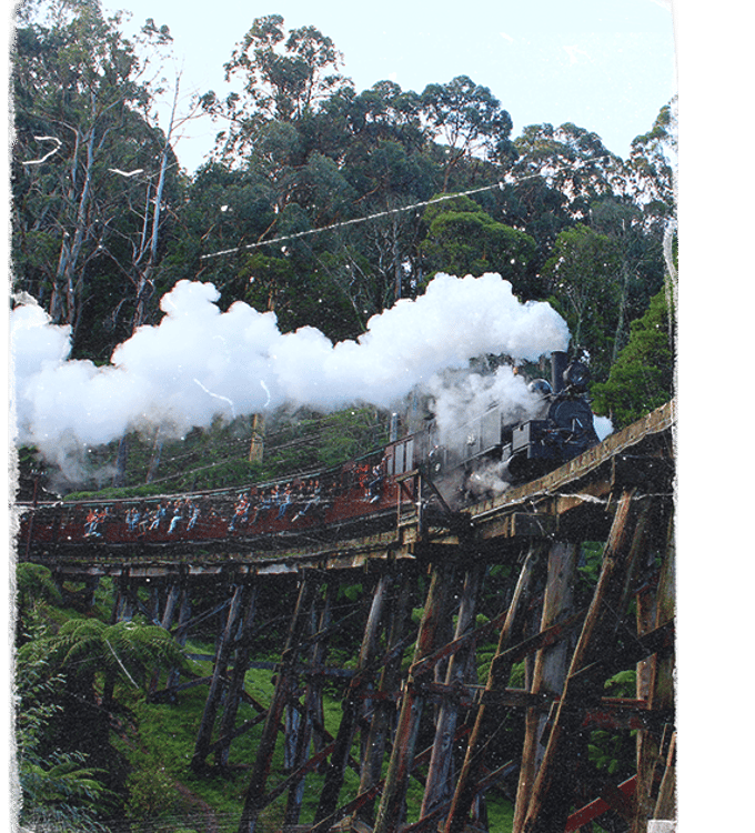For Agatha, this was an opportunity to rhapsodise on exotica and beauty. Boarding Puffing Billy – one of the finest preserved steam railways in the world – you’ll follow in her footsteps to the magnificent Dandenong Ranges National Park, surging forward through the original mountain track between Belgrave and Lakeside. For Agatha, this was exhilarating: “I rode part of the way on the engine!”.