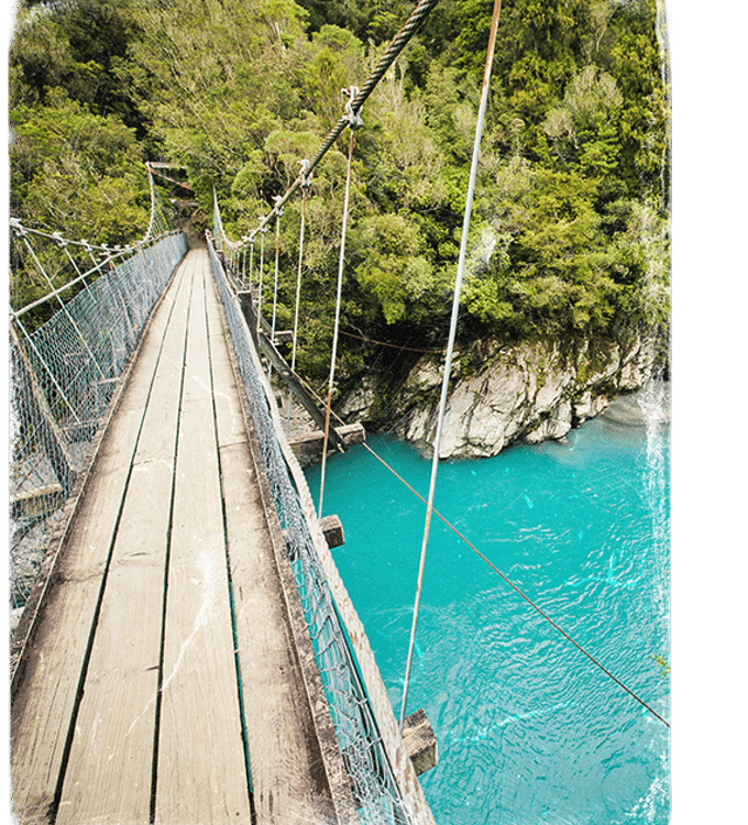 On the next day, you’ll follow Agatha west across the Canterbury Plains – all in sight of the South Alps. Walk the track to Devil’s Punchbowl Falls, enjoying lush beech forests and spectacular waterfalls. You’ll wind up across the Otira Viaduct, before arriving at the sublime shores of Lake Kaniere.