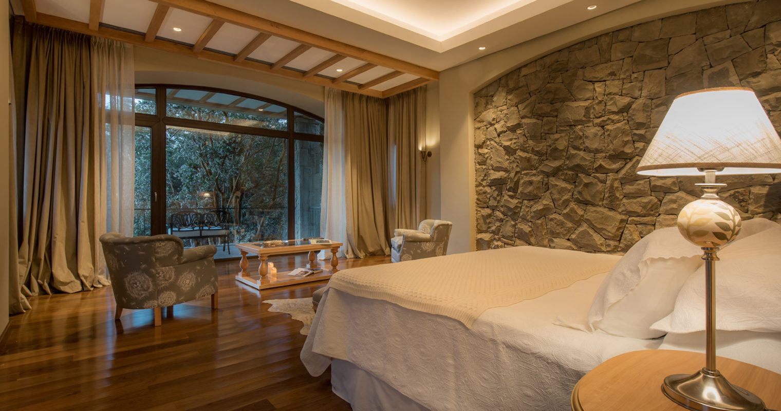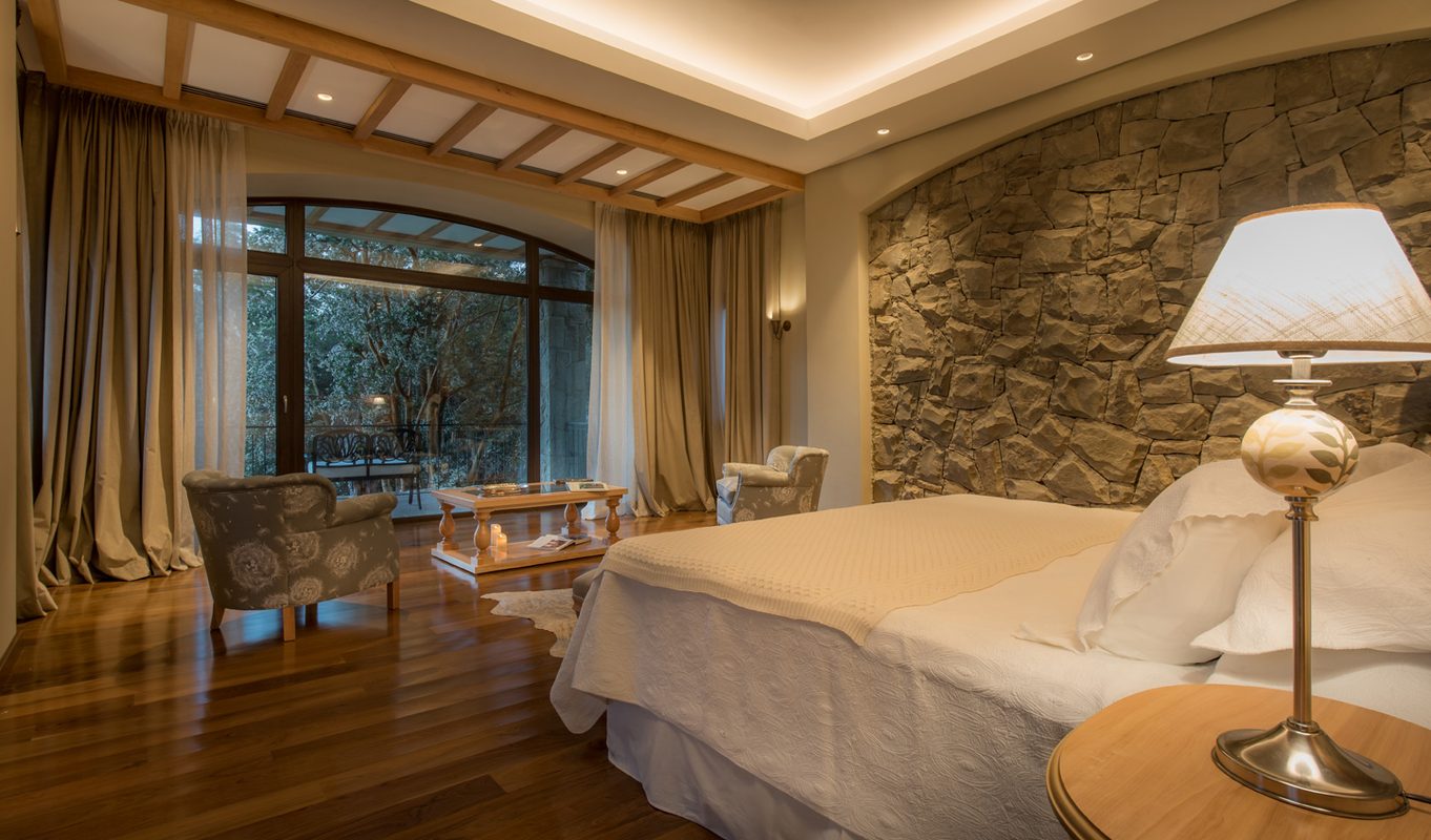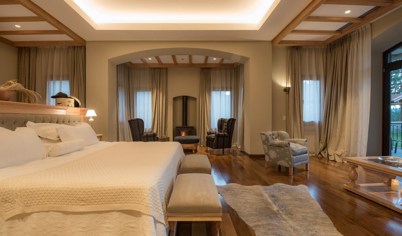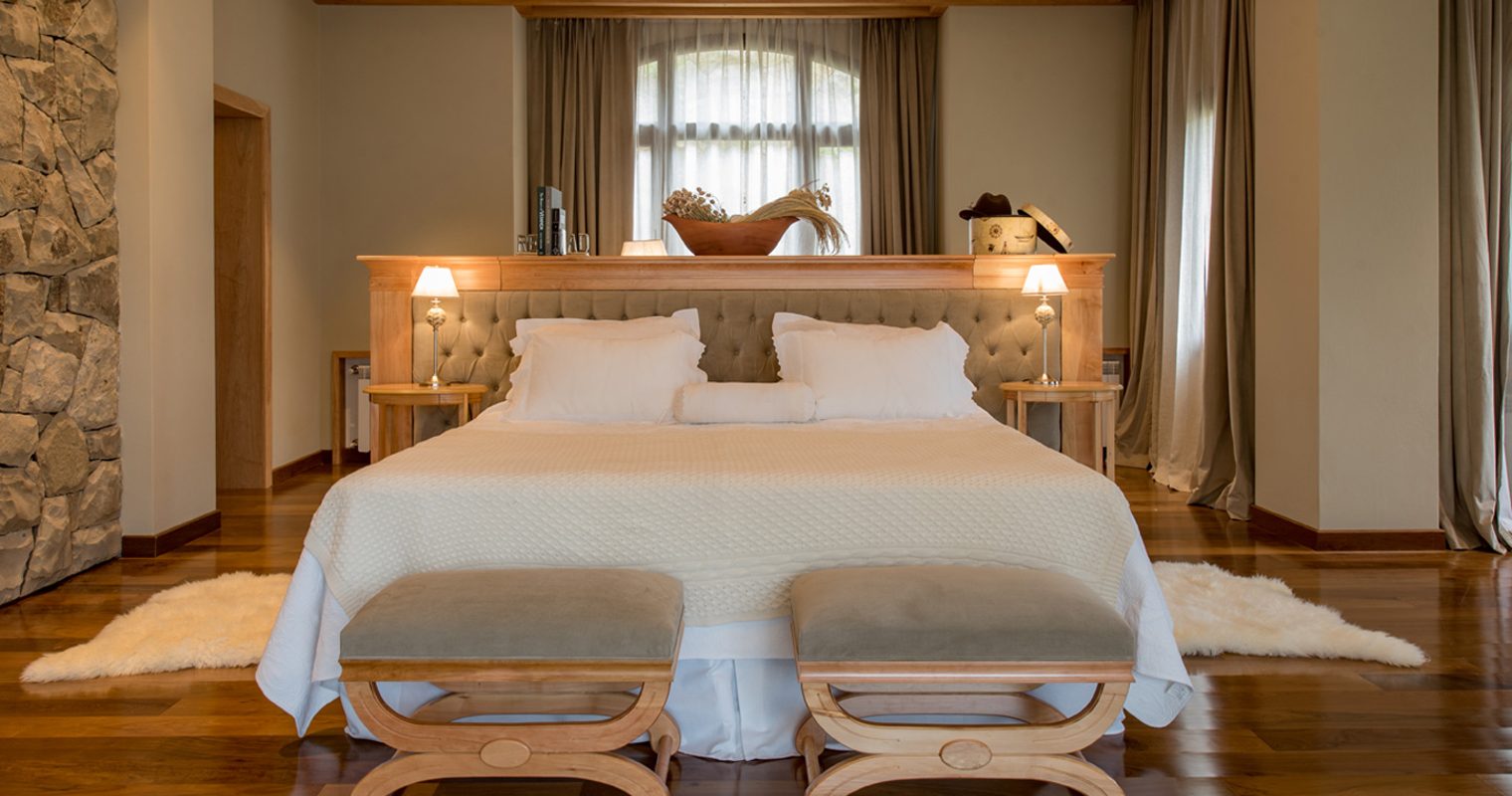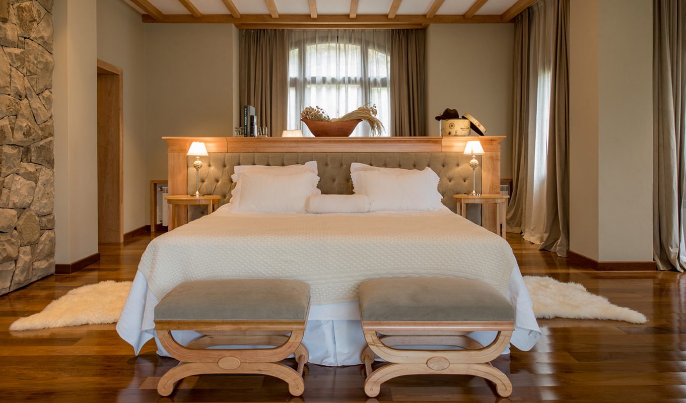 Making the most of their lake views, each of the suites at Villa Beluno is flooded with light and opens up onto a private balcony. The sight of the shores and gardens outdoors is amplified by warm earthy tones indoors, through the use of local lenga wood and statement stone walls. This, though, is simultaneously softened by sheepskin carpets, the flicker of a wood burner and the promise of relaxation in deep soaking tubs. The result is both timelessly elegant – but also cosy and inviting.