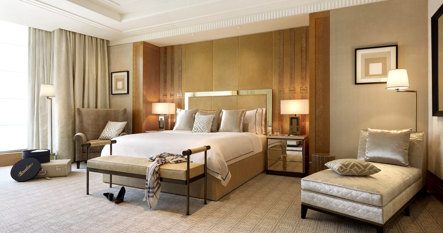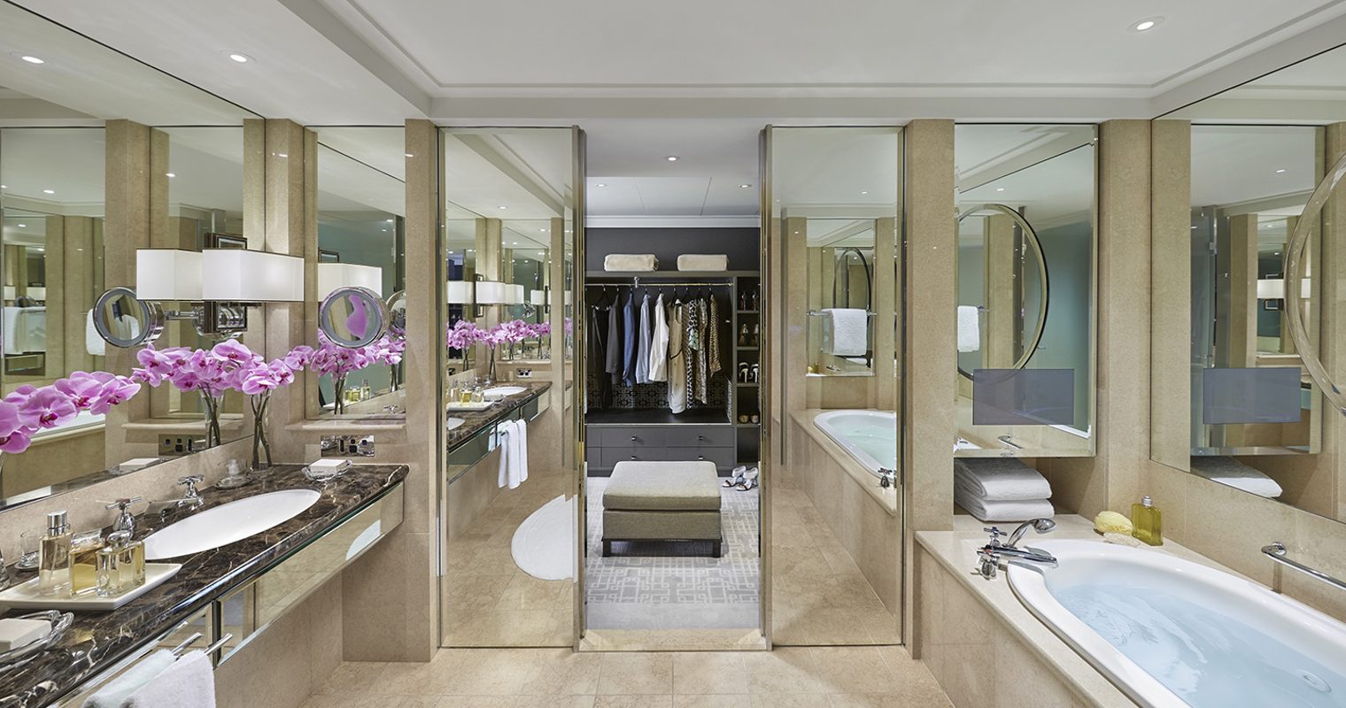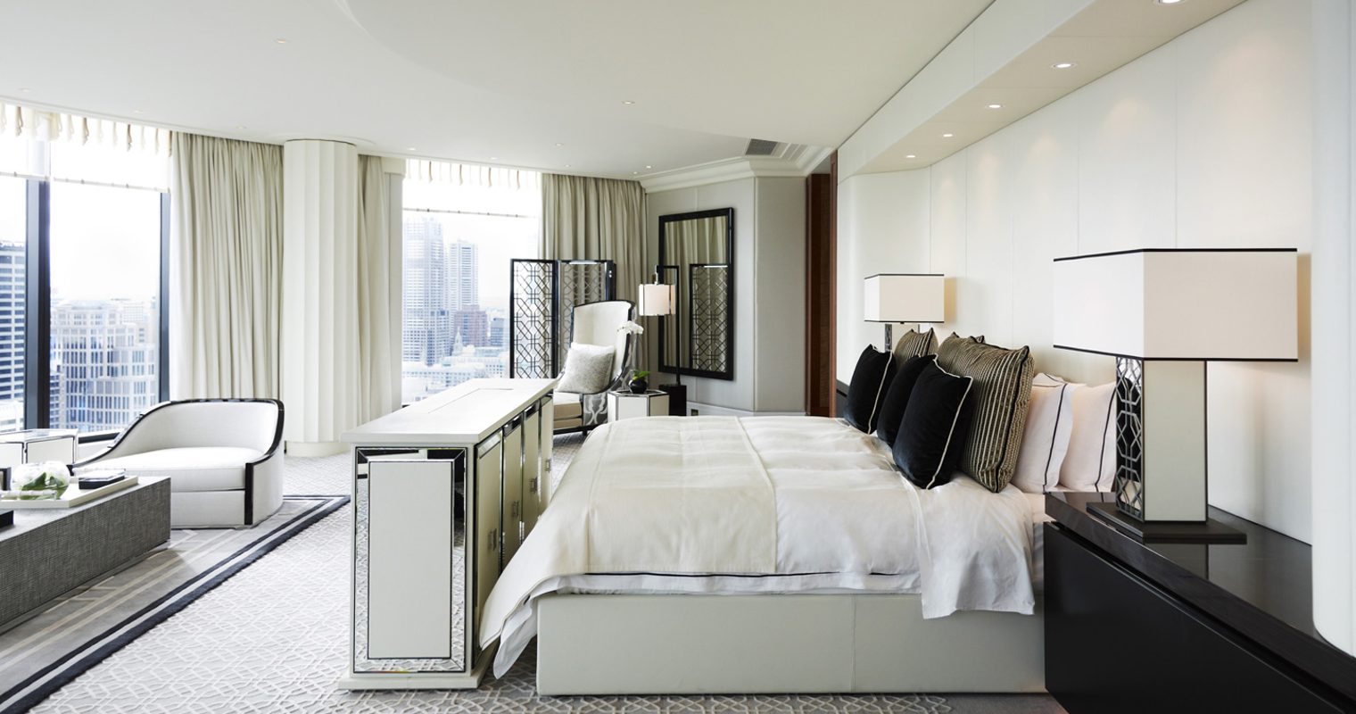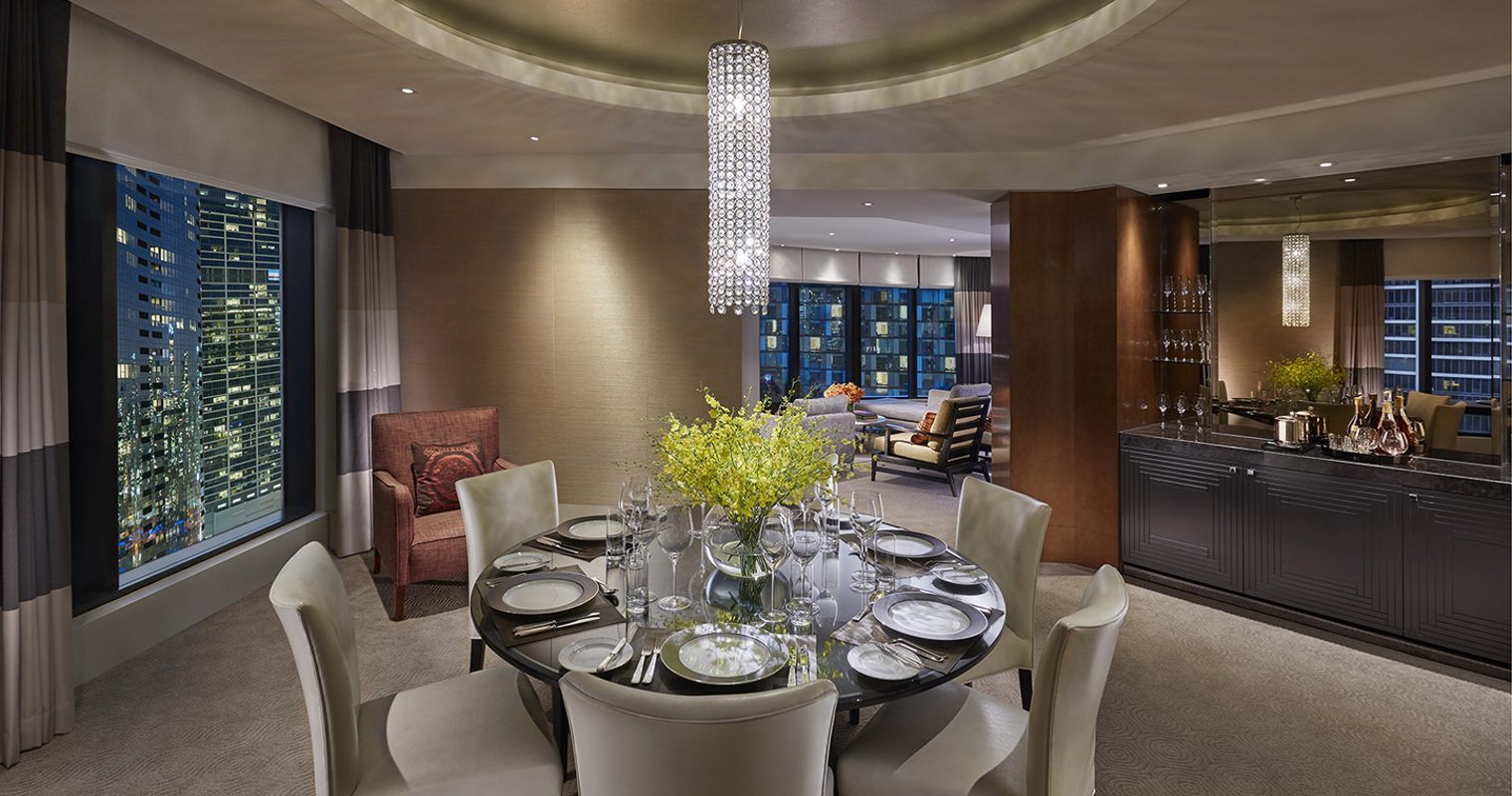 Subtle elegance reigns supreme here with light pouring in through floor to ceiling windows and a colour scheme dressed in nude tones. The style is decidedly contemporary with soft curves and leather accents whilst the ensuite bathrooms add further opulence. Head to toe marble with a deep soaking bath and lit by crystal chandeliers; this is a room designed to pamper. For an added touch of indulgence, head up to 30th and 31st floors and check into one of the villas where you’ll discover a sense of that penthouse feeling as you look out over the city before you.