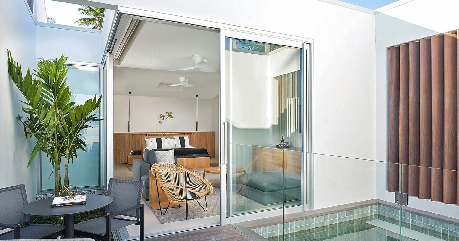 A slew of blues match the surrounding pool and sea views in the nautical inspired pool rooms. If nature is more your style then opt for the retreat rooms, nestled amongst the lush green island vegetation, where you can hop into your outdoor shower in the private rockery. The modern beach villas boast all the tech you could need on the inside, whilst private infinity plunge pools await you when you step outside.
