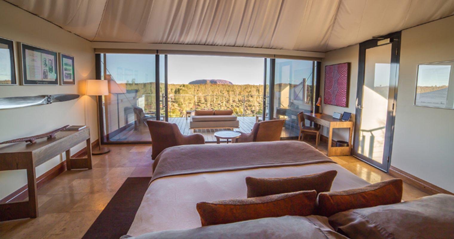 Stay in one of 16 luxury tents and turn your attention to views over Australia’s most stunning landmark: Uluru. Nothing has been spared to make sure your stay here is the ultimate in luxury, with rich dark woodwork, cream walls and soft fabric draping across your ‘tent’ ceiling, you really feel like you’re camping in the wilderness, except you’re in absolute comfort. Lie back in your lush king sized bed and flip a switch to open your blinds up for what we think will be one of the most amazing sunrises (or sunsets if you’re not an early riser) you’ll ever see. If you want to dial the experience up a notch though? There’s always the option to grab a swag and sleep out beneath the stars on your private deck. A magical moment not to be missed in our opinion.