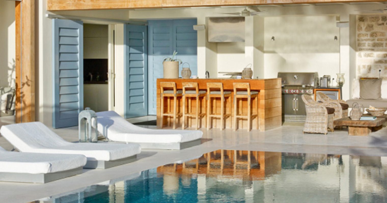 Available for exclusive hire, this luxury Caribbean retreat in St James on Barbados’ west coast boasts five bedrooms, a huge infinity pool and private staff making this a truly luxurious hideaway. Caribbean chic at its finest, think white walls mixed with polished stone and rustic wood, splashes of colour, floor to ceiling windows and an incredible view. Located right on the beach, this private house is in the prime location looking out over the ocean, with the huge deck the perfect place to watch the sunset over the water, and even comes with two bars, so you can perfect the art of mixing the perfect rum punch.