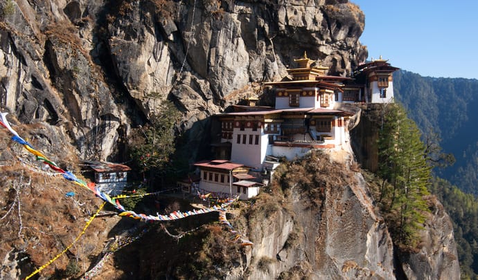 Standing some 10,000 feet tall, the Tiger’s Nest above Paro Valley is Bhutan’s most iconic and sacred site. On your ascent to the temple – built by Gyalse Tenzin Rabgye in 1692 – you’ll be accompanied by Tek, one of our top guides in Bhutan (don’t worry, there are mules on hand if you’d prefer an alternative method). After a rewarding five hour hike to the Buddhist monastery, gaze down at the sweeping valley below and sit peacefully where Buddhists reside.