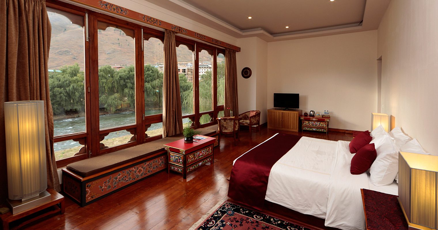 All 30 rooms of Terma Linca overlook the cool rushing waters of Thimphu river. Not only does each room perfectly frame the iconic landscape outside, but inside, each room echoes the same coolness and stillness. Rooms are wooden clad, large and spacious, with simple sleek interiors. Traditional on the outside, Terma Linca’s rooms reveal contemporary interiors with a neutral colour palette and inviting freestanding bathtubs leaving you truly at ease.