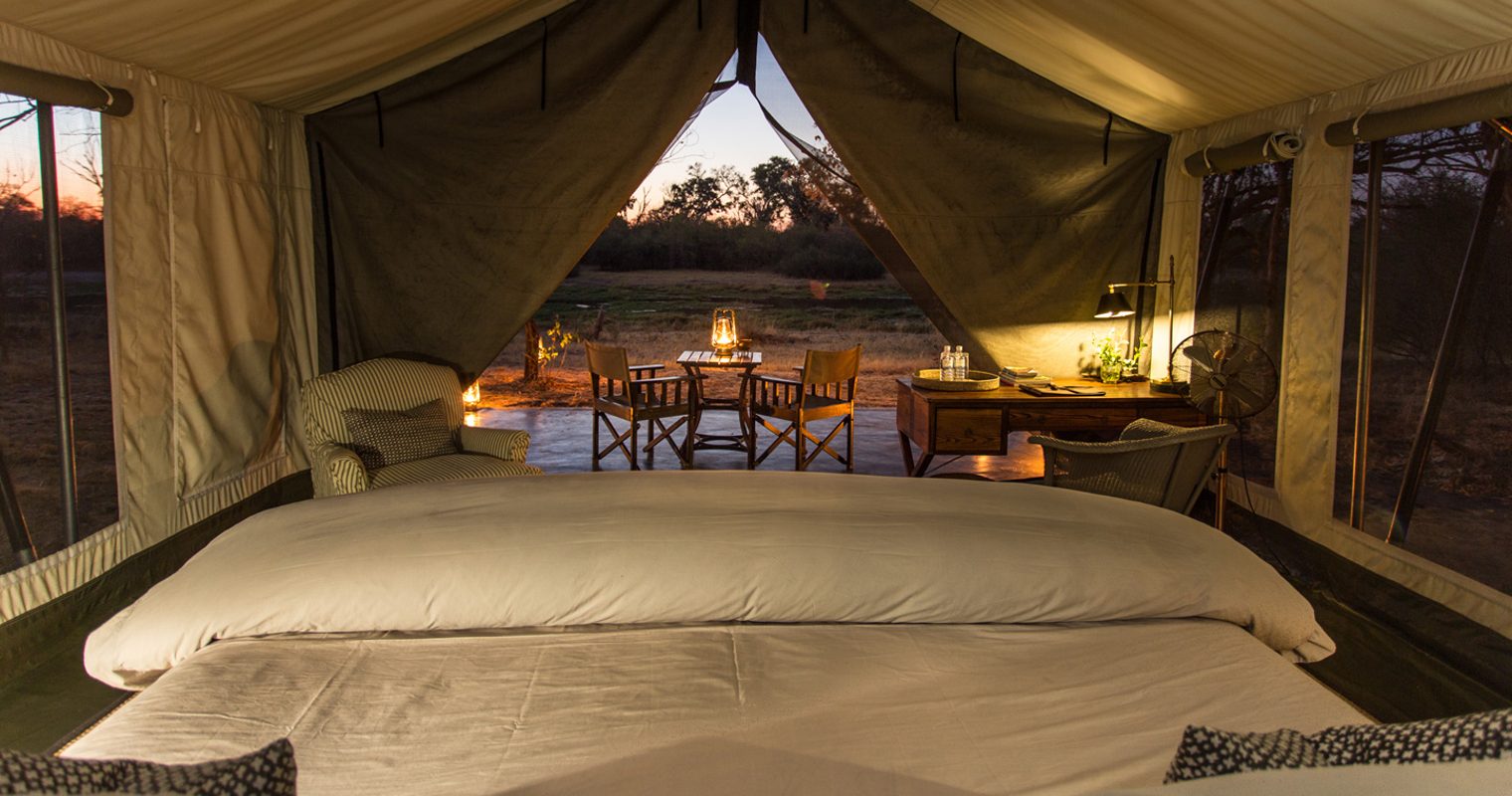 Taking its name from the Setswana word for the sycamore-fig trees which surround the lodge and draw in indigenous game, Machaba Camp offers a traditional, back-to-nature setting for an unforgettable safari experience. Bordering the Moremi Game Reserve, 10 luxury tents await you here alongside a host of incredible experiences set to immerse you in the nature and wildlife of Botswana. Venture out across sweeping plains, shower out in the bush and dine beneath the stars as you embark on one luxurious safari.
