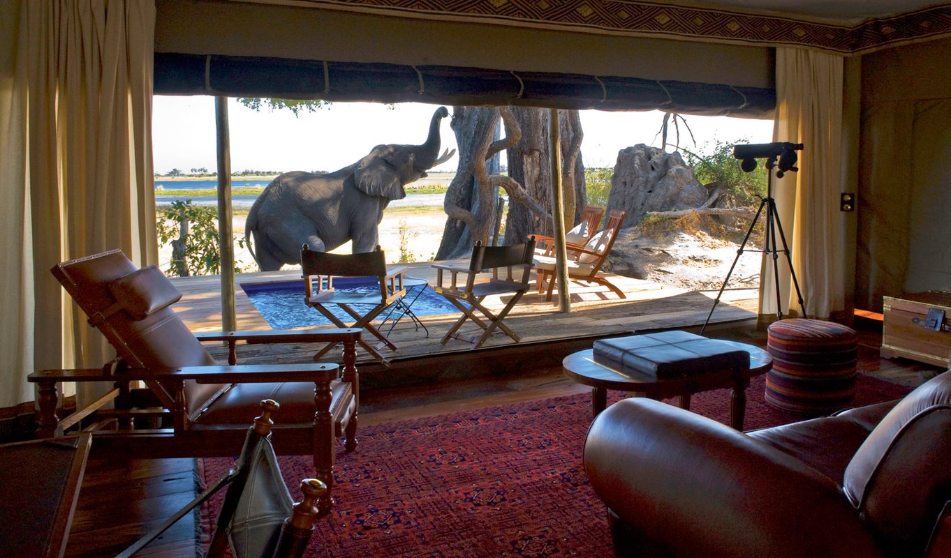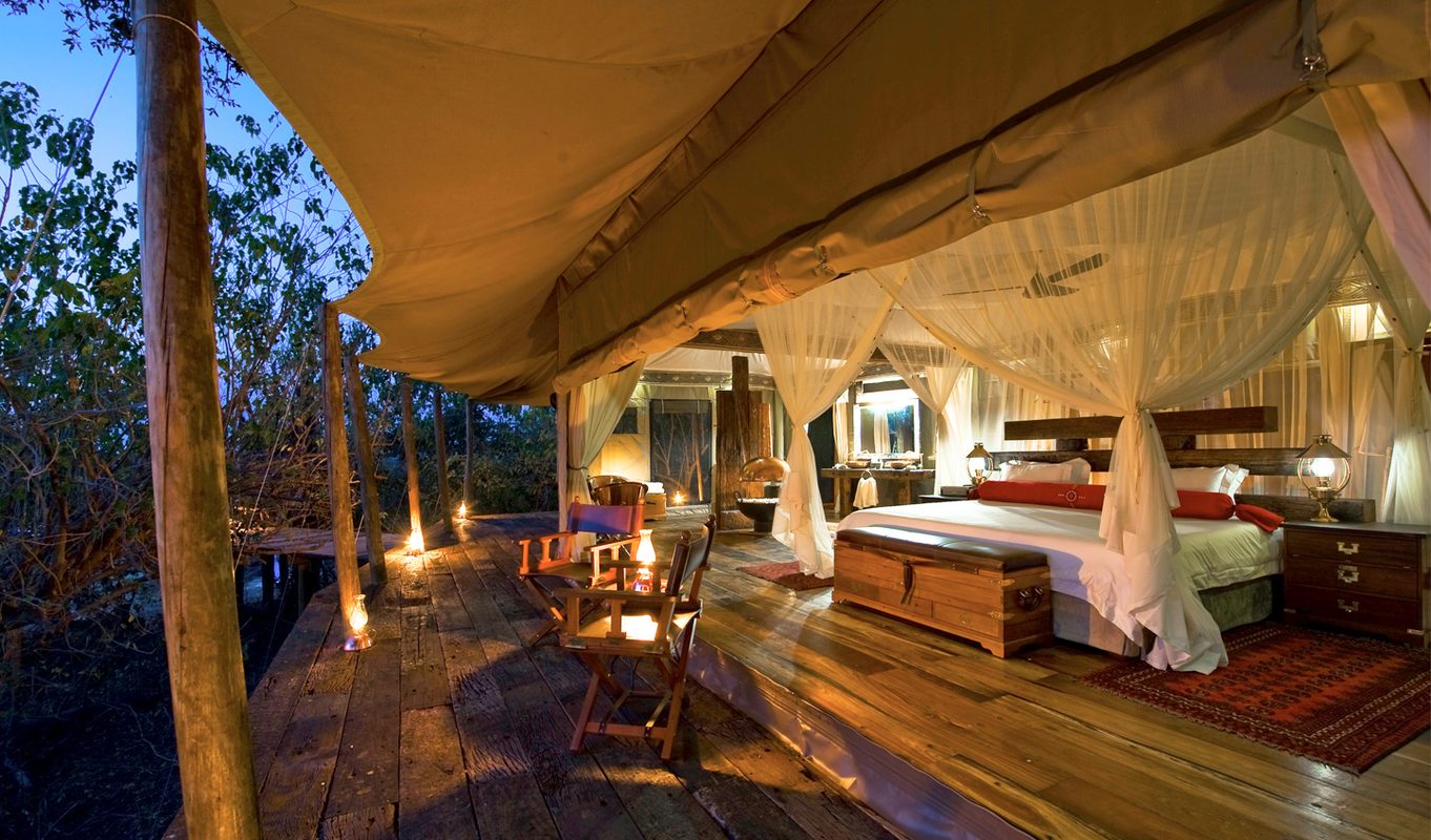 Zarafa Camp, on the edge of the Zibadianja Lagoon, evokes a sense of old-style safari with its four large, luxurious double or twin ‘marquis style’ tents. The camp only sleeps eight at any one time so you can really get an exclusive taste of Africa and get the incredible wildlife all to yourself.