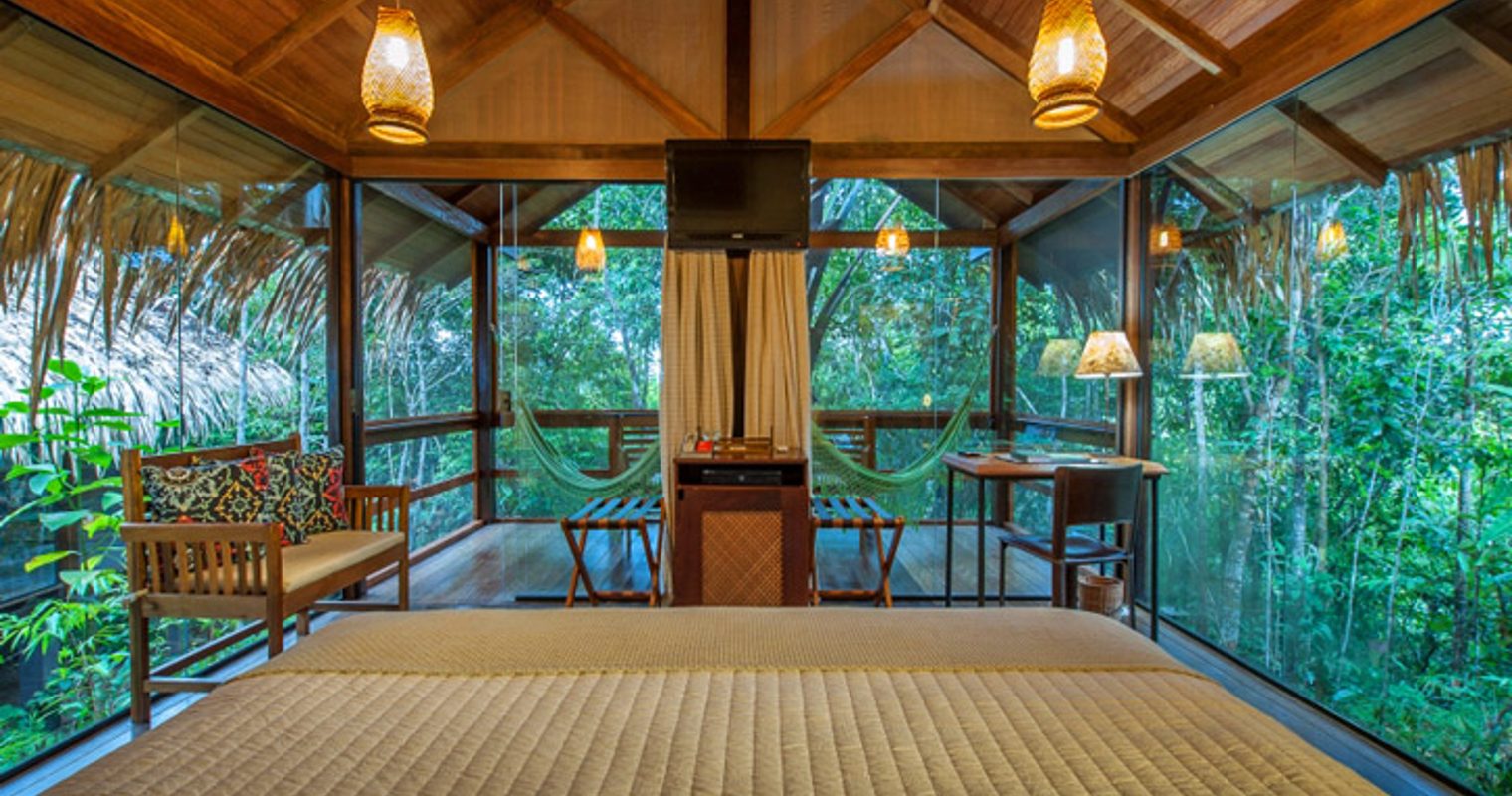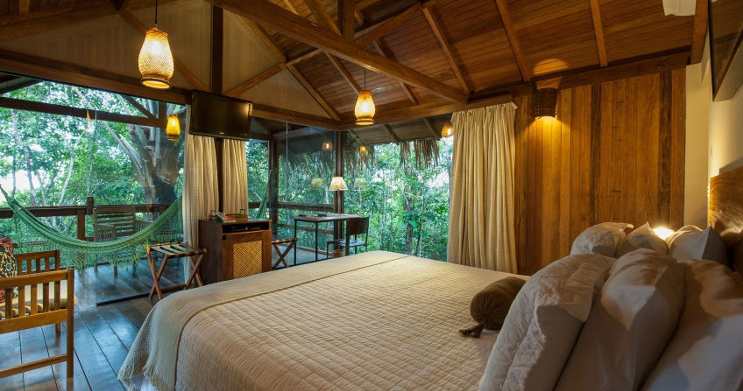 Choose between 16 cottages and four bungalows to sleep in for the duration of your Amazonian adventure, each one with unbridled views out onto the rainforest. The rooms are decorated in a gorgeous combination of authentic wooden furniture and huge glass window panes so you can make the most of your scenic surroundings. We loved the hammocks out on their terraces, perfect for those afternoons where you just need to kick back and enjoy a sunset Caipirinha.