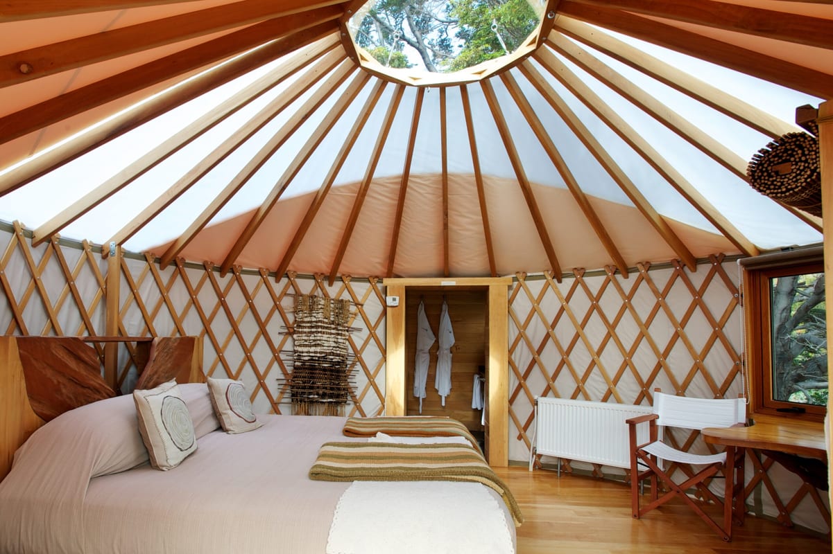 Stroll along a wooden bridge and discover your personal Patagonian paradise. You don’t have your own room; you have your own spacious yurt, elevated by striking wooden beams. Each yurt is complete with private terrace boasting sweeping views over the lake and luxurious beds which are topped with hand-crafted local textiles. When you lie down, you’ll notice the open dome in the roof, which allows you to watch the stars burn above as you relax in your luxurious, heated bolthole.