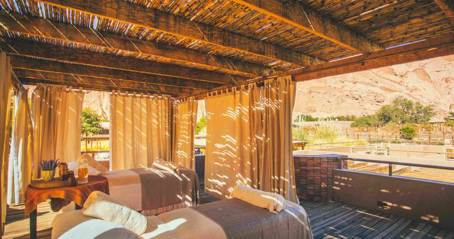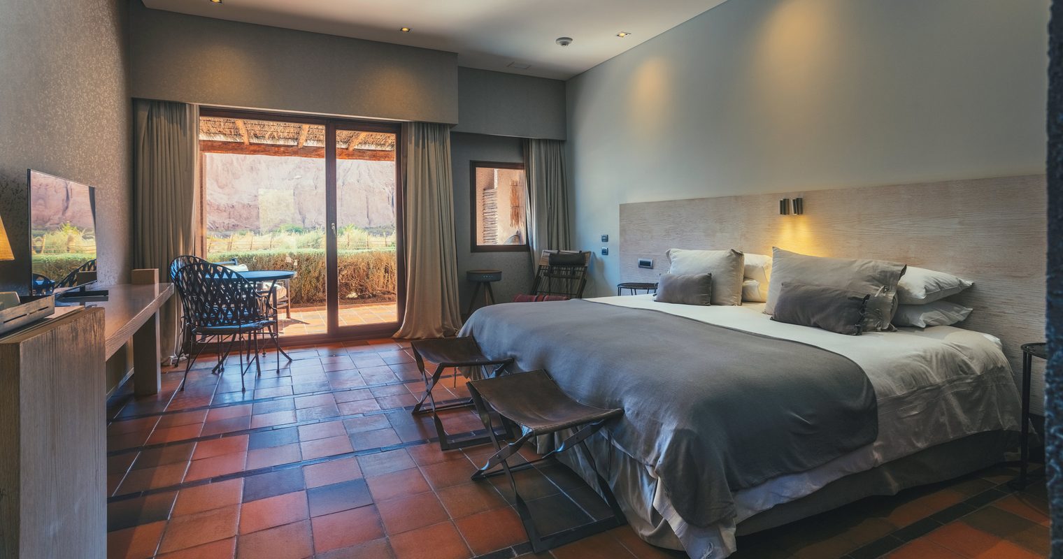 Drawing inspiration from the local Andean culture, each of the hotel’s elegant rooms and suites is decorated with handwoven throws, macrame hangings, and natural materials. Looking out at spectacular views of the Salt Mountain Range and the Andean hills, you’ll listen to the sounds of the San Pedro River as you step out onto your private terrace and feel the warmth of the Atacama sun.