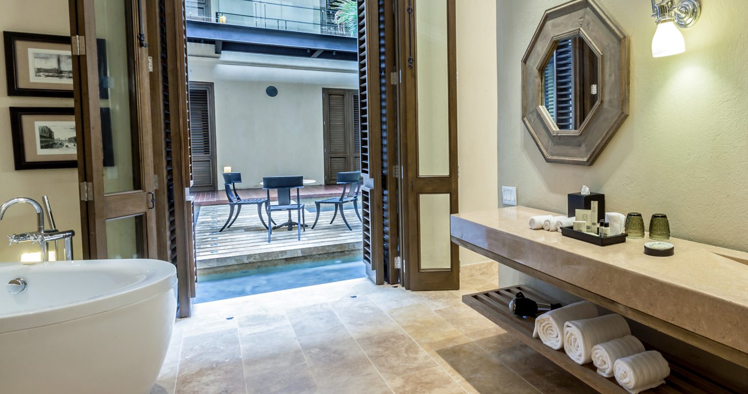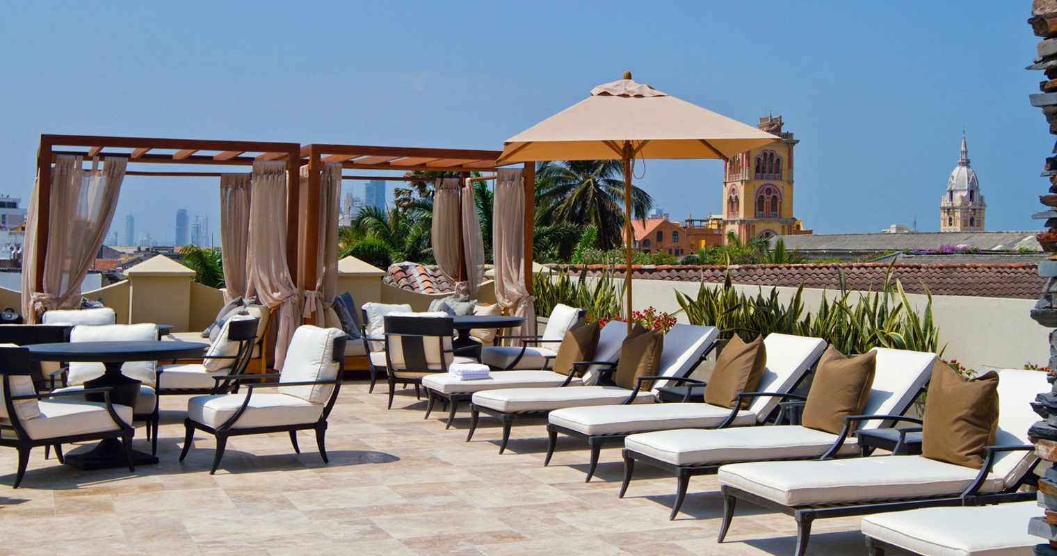 The style and design of each of the 51 rooms much reflects the character of Cartagena itself. Loyal to colonial roots, with accents inspired by the British aristocracy, they offer a glimpse of the past whilst still boasting state-of-the-art gadgets of today. Dark wood floorboards expertly offset crisp white linens that top king-size beds whilst studded footstools and cosy armchairs create an atmosphere of relaxed elegance.