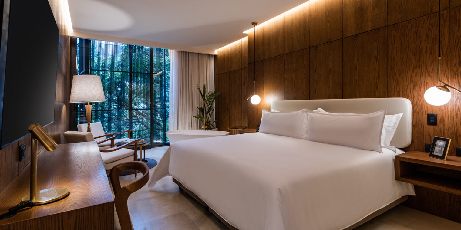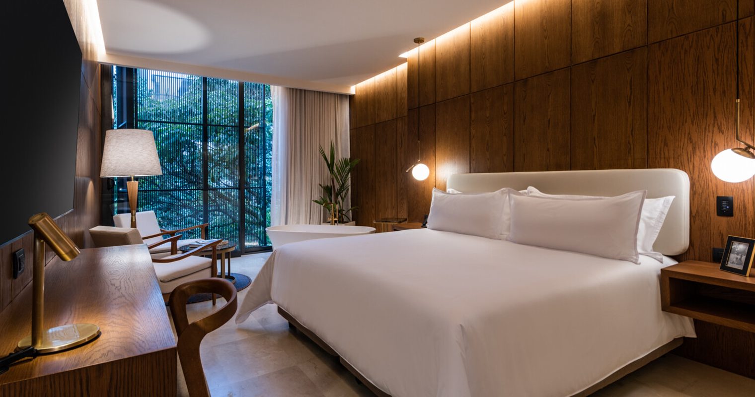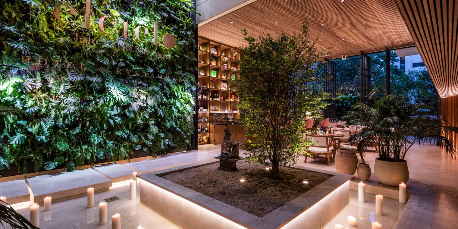 What happens when a chef with a Michelin-star restaurant to his name opens a hotel in Colombia’s most cosmopolitan city? The answer – you guessed it – is Elcielo, a contemporary 28-room boutique hotel located in Medellin’s El Poblado neighborhood. This isn’t just a place to sleep – it’s a six-story architectural statement that serves up an experience at every turn, whether it’s an 18-course tasting menu from Chef Juan Manuel Barrientos (known as Juanma to his peers) or a slow afternoon appreciating skyline views while slipping in and out of the rooftop infinity pool – the spot to cool off after a day of seeing the city.