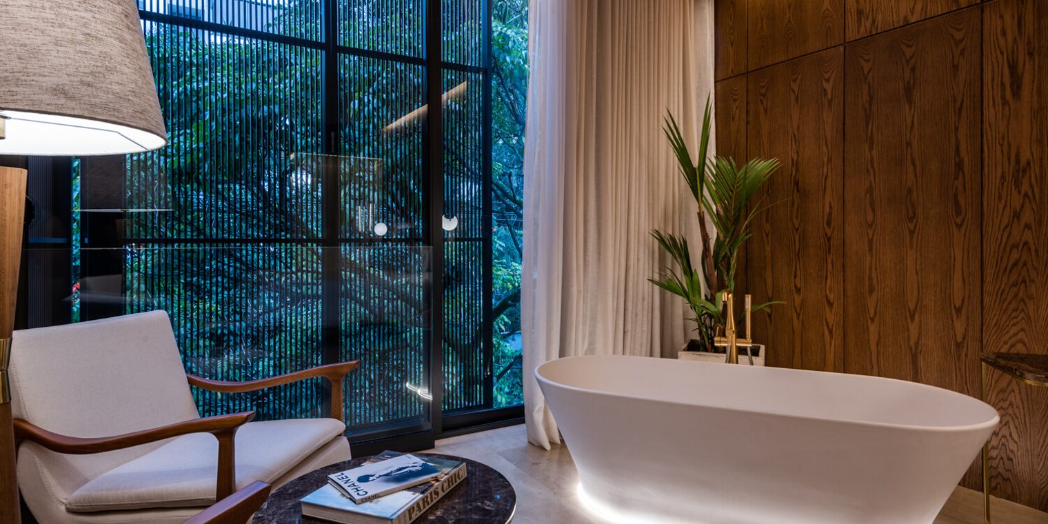 The vast living wall and soaring fifth-floor atrium give you an idea of what’s to come in this contemporary hotel. The 28 suites feel grown-up and sophisticated, combining hardwood veneer walls with marble floors, vast beds and, in some bigger suites, silky-soft leather couches. There’s an apartment-like feel in each one, with floor-to-ceiling windows allowing plenty of natural light. Huge bathtubs are the perfect place to wind down, or there’s the rainshower with a mirrored ceiling. Because, well, why not?