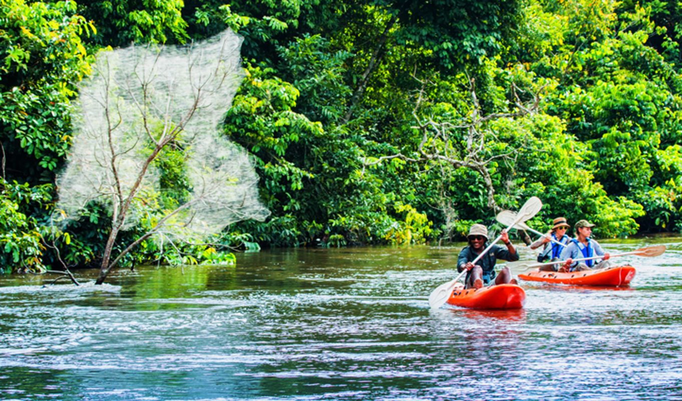 You’ll spend the next two nights at Lango Camp where labyrinthine raised walkways create a treetop-like atmosphere. It’s enough to bring out the big kids in us all. In the morning, you’ll set off on another adventure walk – perfect for studying the finer details of the forest. The walks around here truly are adventurous in every sense of the word – expect to return to camp with wet and muddy shoes (at the very least) as evidence of your escapades. After you’ve washed yourself off in a steaming hot shower, spend a leisurely afternoon watching a rainbow’s worth of birds flying over the camp deck.