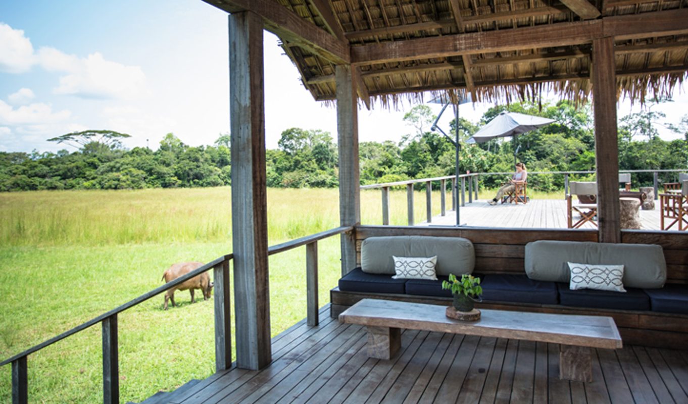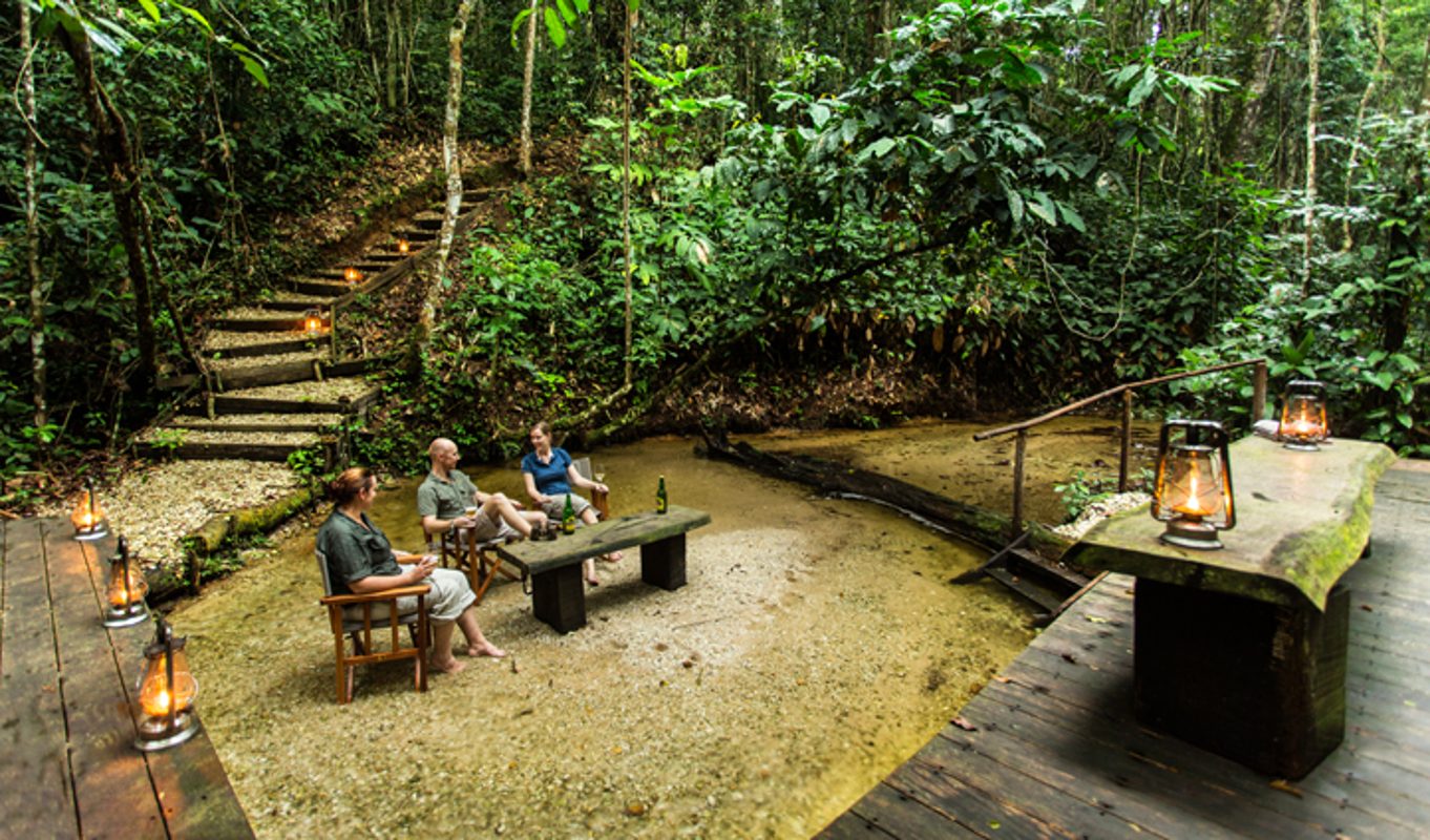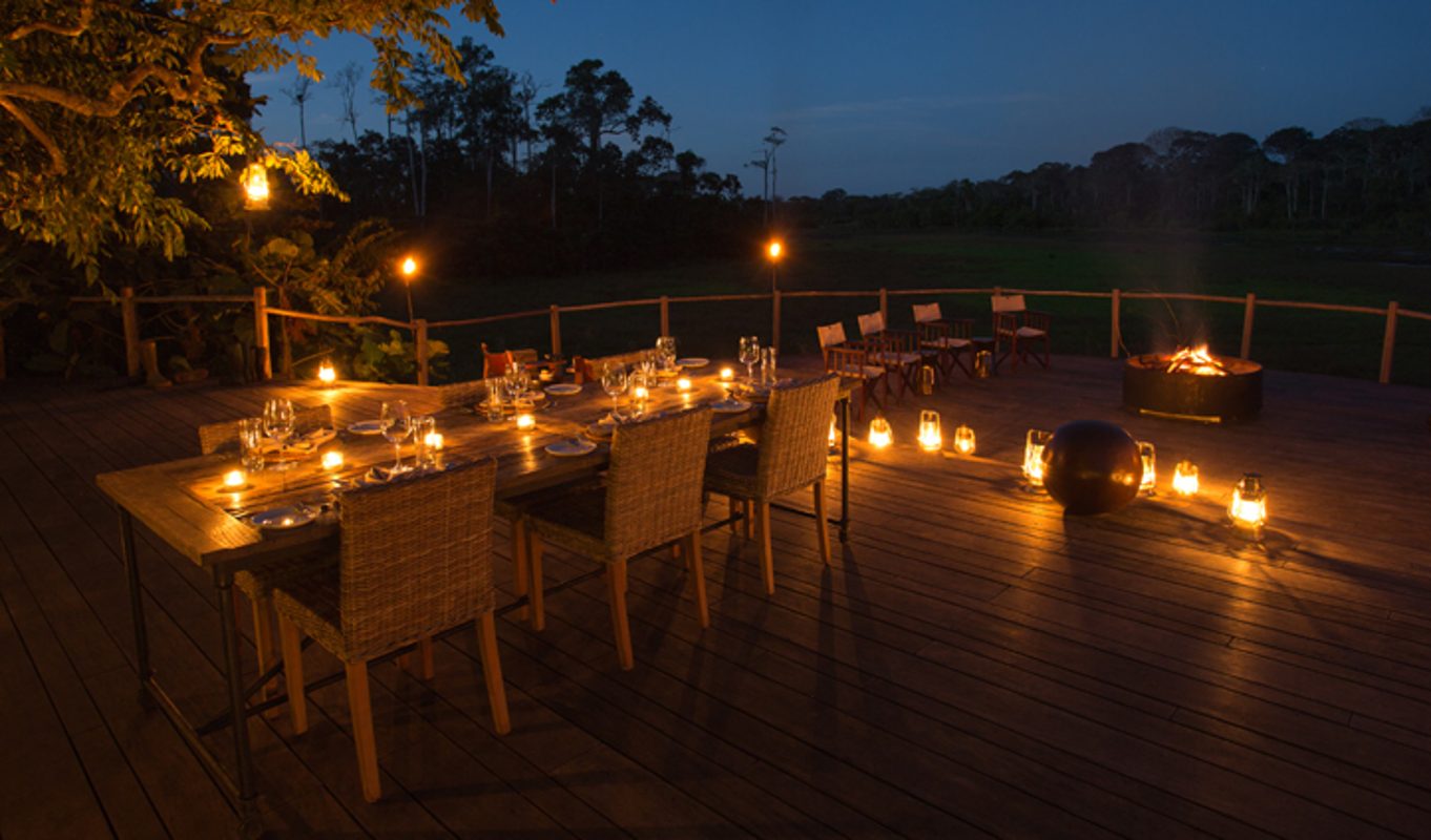 The largest of the three camps, Mboko is perfect for families, with two of the 12 rooms sleeping up to four people. Each of the canvas cabins are built alongside the Lekoli River, a favourite watering hole of Forest Elephants, so don’t be surprised to walk out onto your private deck and spot one down below. The camp is also full of lovely little nooks to unwind in and share stories at the end of the day. We absolutely love the River Deck on the Lekoli where you can feel the rigours of jungle life melt away, with your toes in the water and a drink in your hand. Bliss. In the evenings, head down to the star deck where you can enjoy a drink around the fire pit before a mouthwatering dinner overlooking wide open grasslands.