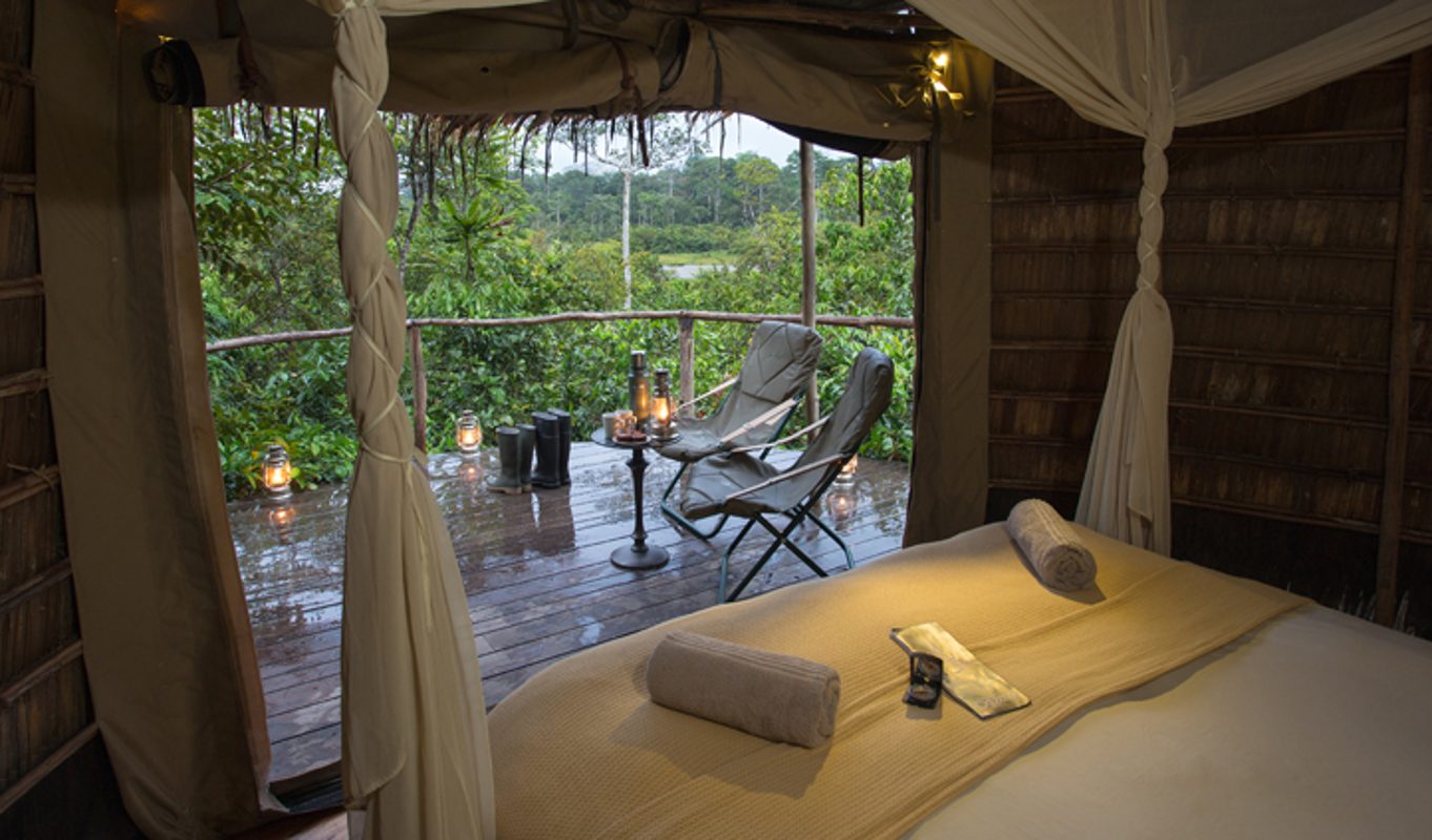 This mesmerising camp is guaranteed to bring out your inner child as you explore the labyrinthine camp walkways that create a magical treehouse-like atmosphere. The six rooms here are built high up in the dense forest and with stunning 360 degree views of Lango bai from a wraparound balcony, you will truly feel at one with nature. Lango Camp is the perfect place for a literal splash of adventure, with activities here ranging from kayaking down Lekoli River to wading up Lango Bai. Whichever you choose, be prepared to come back a little muddier and a little damper than when you left, but that’s nothing a hot shower in your en-suite can’t fix. So get stuck in (literally) as you discover the wildlife-rich riverine forests of Lango, home to Bongos, Sitatungas and Red River Hogs as well as a myriad of colourful birds.