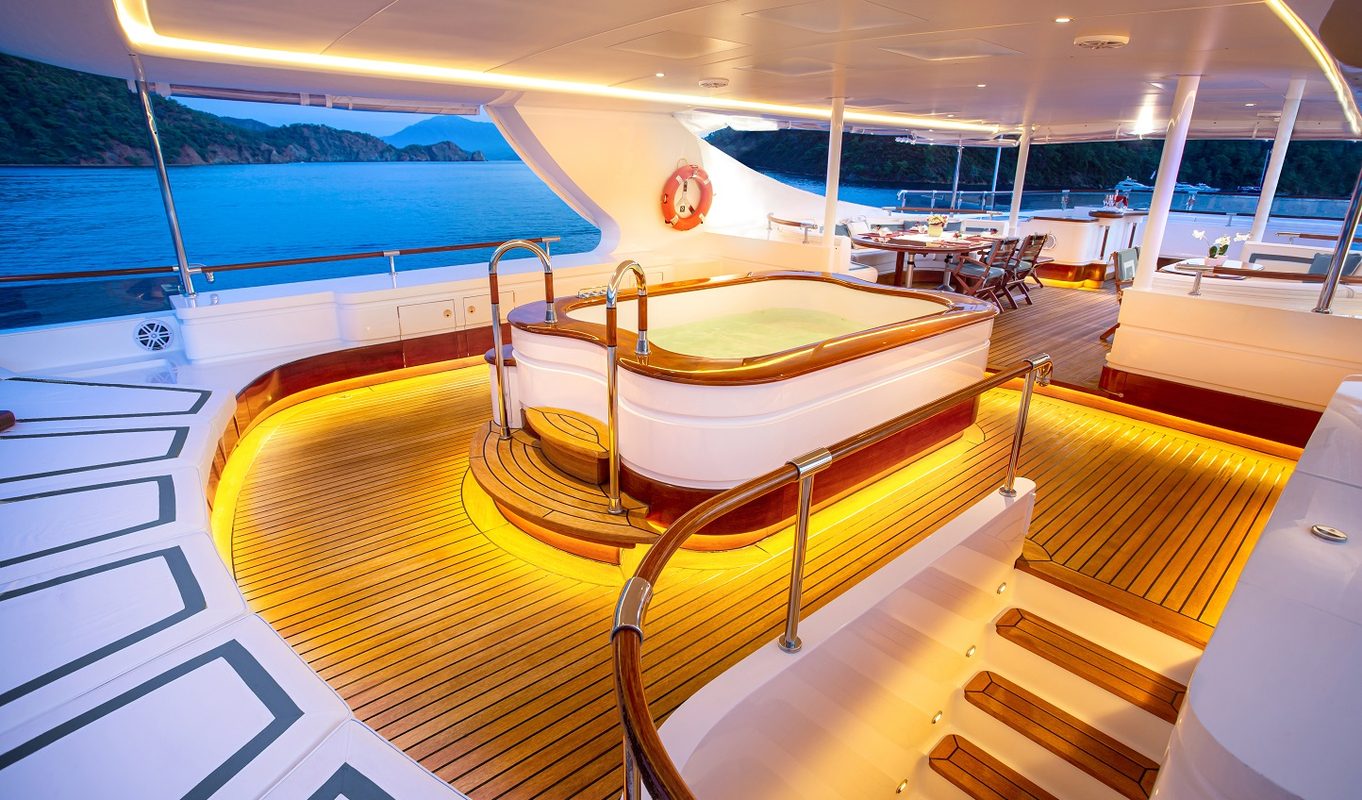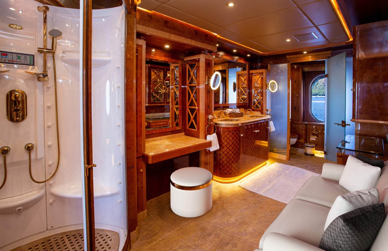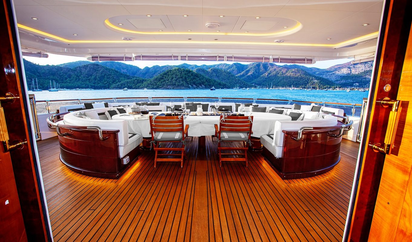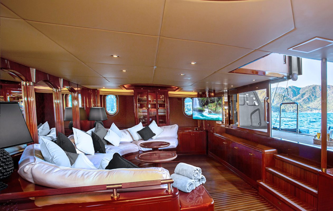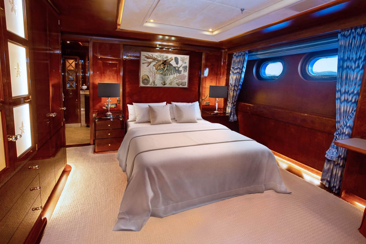 Italian design meets a sense of Ecuadorian exploration in Aqua Mare’s seven suites. Clad in rich walnut veneer panelling, the rooms are lit in honeyed tones whilst curated prints from the Wallace and Darwin era adorn the walls. Crisp linens and Italianate marble bathrooms with walk-in showers add further luxury, but for unrivalled comfort, it has to be the Owner’s Suite. Twice the size of any other suite, it offers an enviable view onto the Galapagos with wall to wall windows.