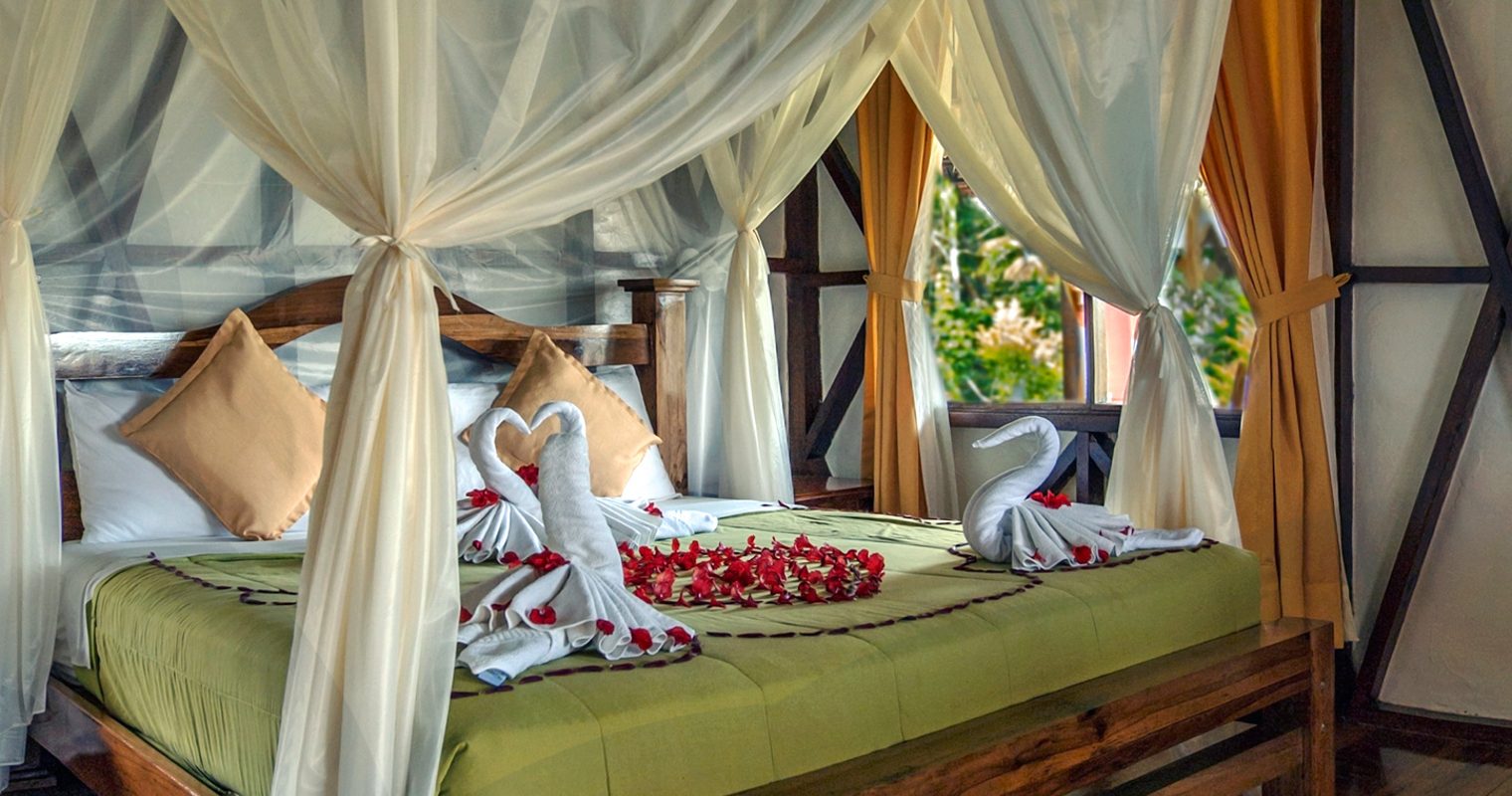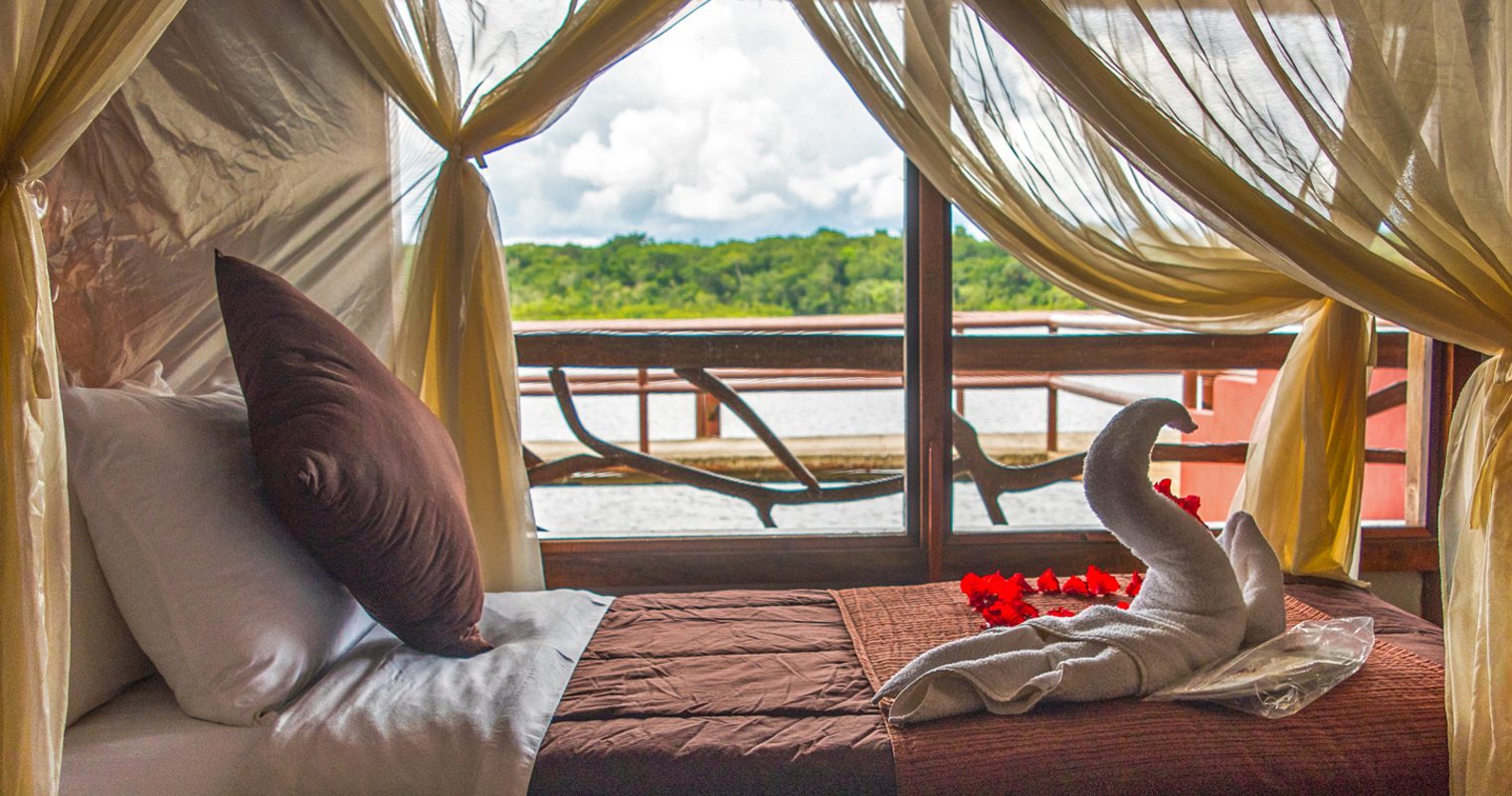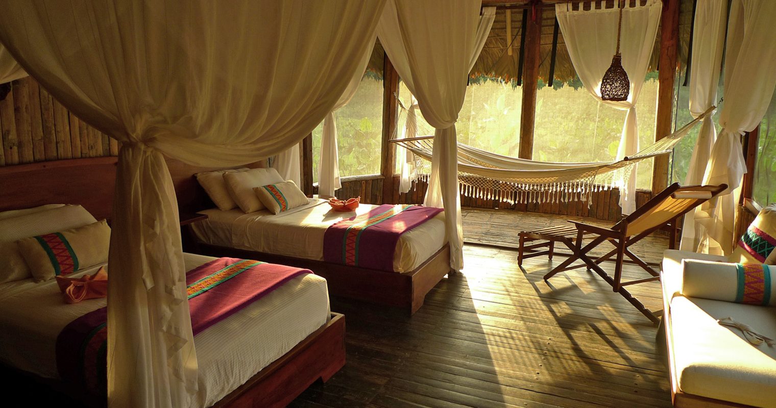 Getting to Napo is part of the adventure of staying here. It is in the beautiful Yasuní National Park, a UNESCO protected biosphere site. A two-hour motorised boat journey down the Napo River from the city of Coca is the first step. During the boat ride take in the majesty of the Amazon and keep your eyes peeled for all 610 species of bird that live here as well as monkeys, tapirs, anacondas and if you’re lucky maybe even a jaguar. You then transfer to a dug-out canoe for an equally wondrous hour long meander down a stream that connects to Lake Añangu where your jungle hideaway awaits.