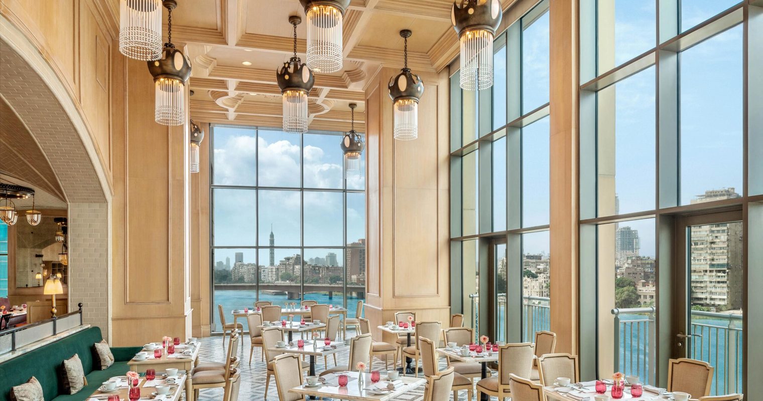 Neutral shades of peach, grey and maroon tastefully run throughout the hotel’s 362 rooms and suites, all designed according to classical décor. On the walls, Egyptian murals depict papyrus flowers and bathrooms are a luxurious affair of marbled flooring and mosaic tiles. The Nile View rooms are some of our favourites – allowing you to admire the sun as it sets over the city’s iconic skyline from the comfort of your own bed.