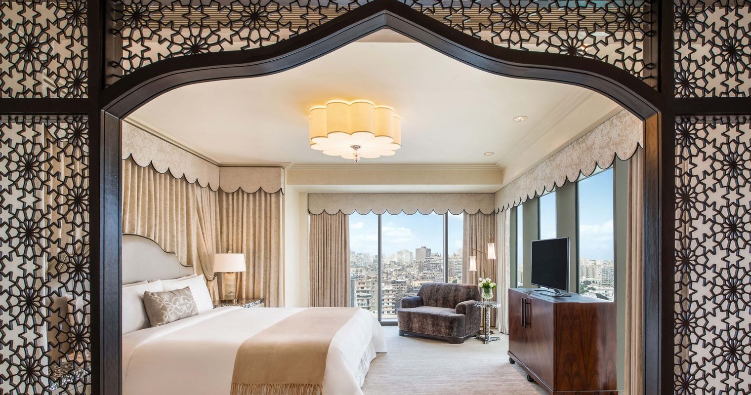 Towering over the banks of the River Nile, The St. Regis Cairo is certainly an impressive sight to behold. Boasting 36 floors, 7 dining options and the St. Regis signature Iridium Spa, this hotel provides a wonderfully luxurious space in which to relax and unwind after a busy day of exploration. Opulence is woven into all corners of this property with the interiors showcasing floors blanketed in rich Oriental-style rugs, ceilings lined by crystal chandeliers, and dark wood columns inlaid with mother-of-pearl. Outside meanwhile, you’ll find a stylish terraced courtyard and an outdoor pool that runs parallel to the river, surrounded by elegant loungers and cabanas.