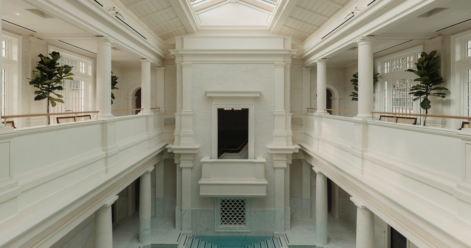 Playful and indulgent, elegant yet unpredictable, Estelle Manor doesn’t follow the usual country house rules. Scattered across 85 acres of bucolic Cotswold countryside, this Oxfordshire estate is home to a revamped Grade II-listed Jacobethan Hall, acres of parkland and, at the end of a woodland trail, a vast and dazzling reimagining of a bathhouse of Imperial Rome.