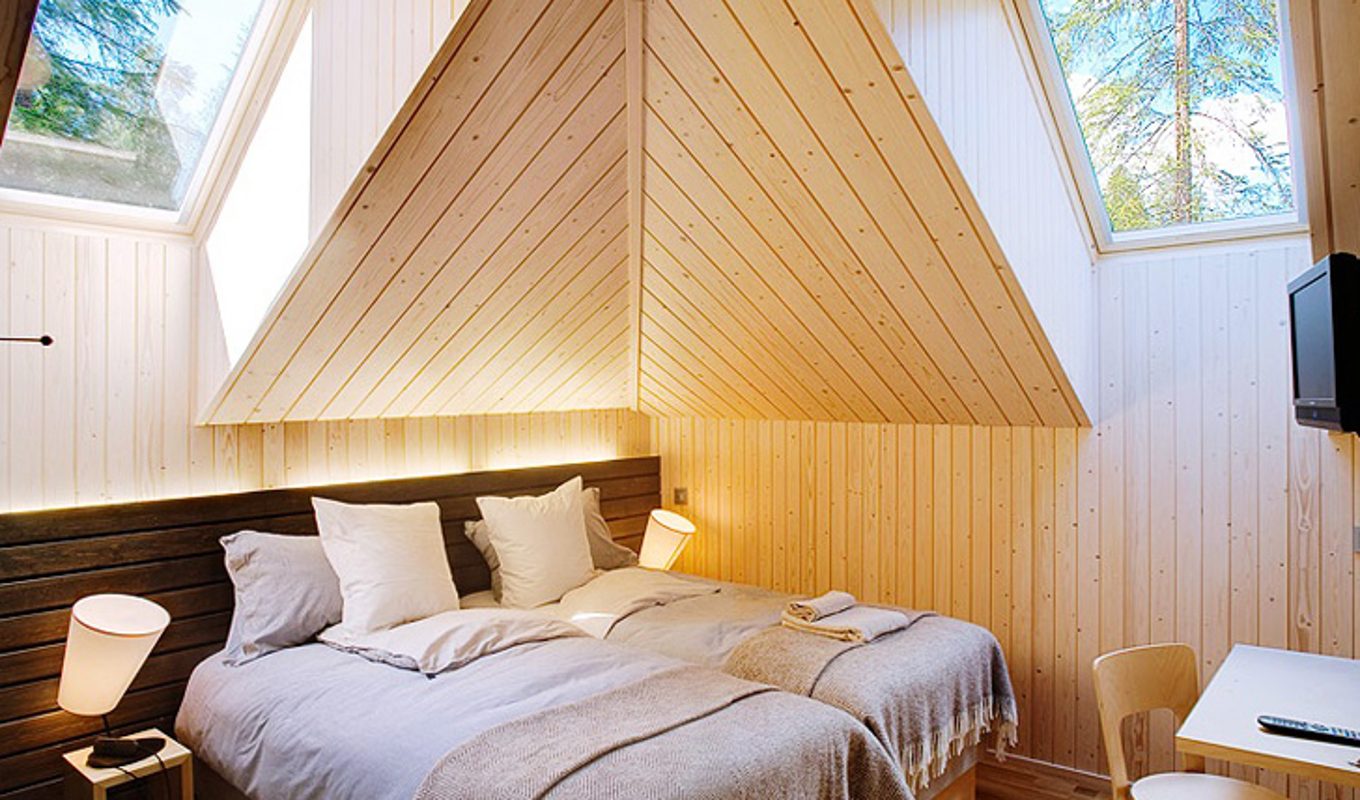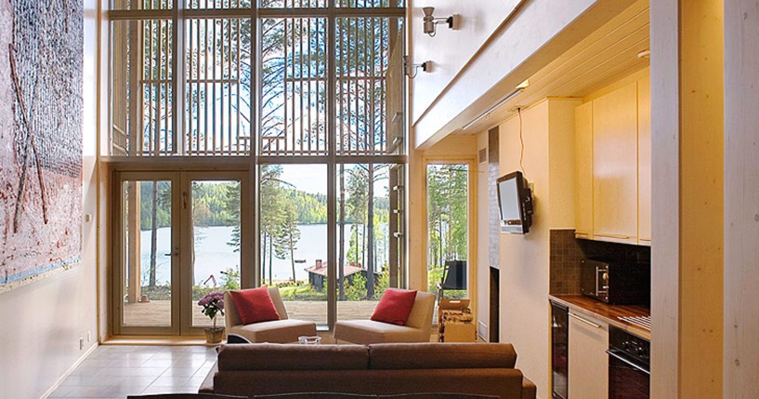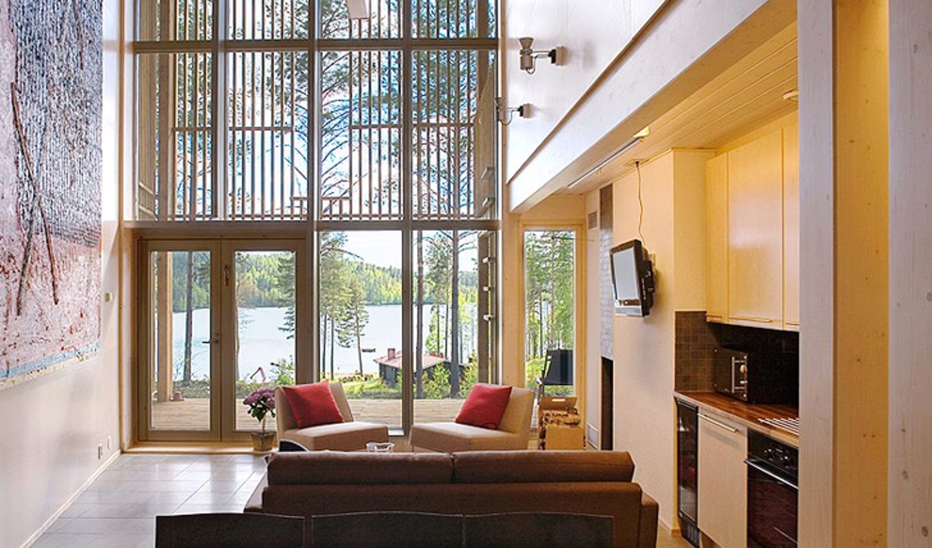 Each of the villas are unique, having absorbed the personal touches of individual artists and designers. All are ecological wooden structures and the large windows will have you feeling at one with nature. The lakeside villas in particular are our favourites. Boasting views over the waters and beyond, you can expect chic Scandinavian décor and all the amenities you could ever need. All fireplaces are stocked with firewood and each villa has its own sauna, BBQ, private beach and private jetty. You could spend days just in and around the villa, jumping straight into the lake from your jetty or relaxing on the private terrace after a delicious BBQ meal. You’ve even got your own rowing boat and bikes should you want to explore a little further afar.