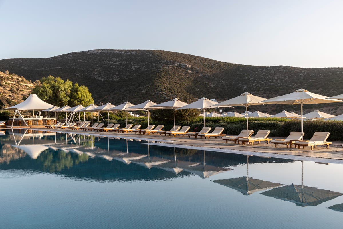 Built into the hillside overlooking Vathi Bay on the serene south coast of Sifnos, Elies Resorts is seriously idyllic. Balancing classic Cycladic architecture with minimalist modern touches, it’s a beautiful place to completely unwind on one of Greece’s smaller, quieter islands. Plus, it’s perfectly positioned to get the Aegean sun all day long. We couldn’t ask for more.