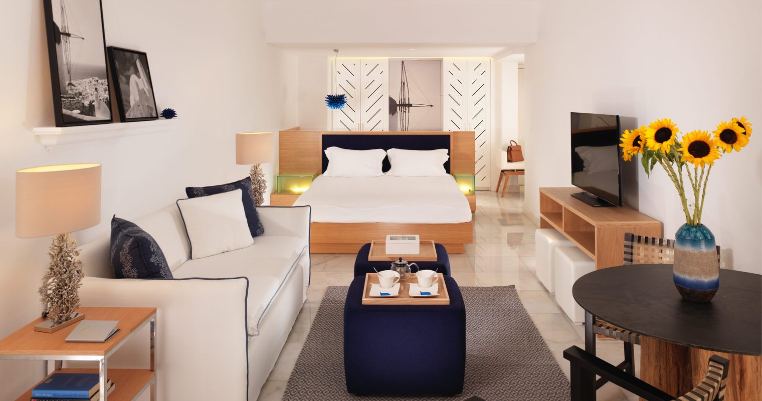 You’ll also venture out for the day by private yacht to see first-hand where the ancients lived on a tour of Delos – the archaeological jewel of the Cyclades. And, if you’re feeling like a challenge, the top of nearby Mount Kythnos boasts spectacular views over the island, sea and site for those who make the climb. There’ll also be a delicious lunch on board, as well as snorkelling equipment if you feel like seeking out some sea creatures. You’ll then return to the hotel for some downtime – making the most of your suite’s very own steam cabin and infinity pool – as it’ll soon be time to journey over to Crete.