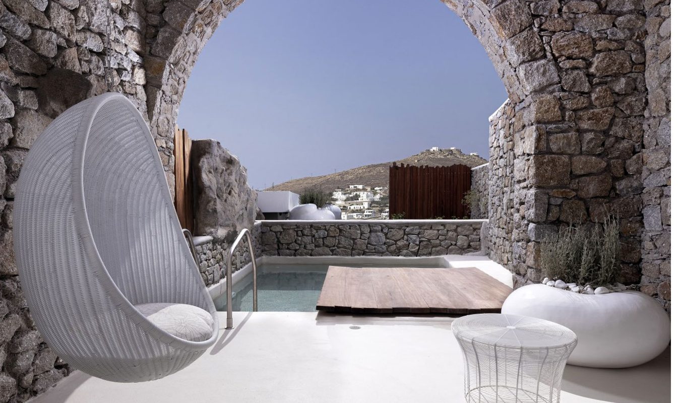 Located on one of the most popular Greek Islands, The Kensho luxury hotel is a stylish hotel situated on the beautiful island of Mykonos. The Kensho design is flawlessly enthused by the natural splendour of the Cyclades emulating the boundless colours of the sky and the sea throughout its 35 rooms; it really is a unique hospitality experience. The Kensho provides you with the perfect mixture of relaxation and rejuvenation with the hotel looking out over the outstanding Ornos Bay or for the more adventurous, where the heart of the island lies only a short walk away.