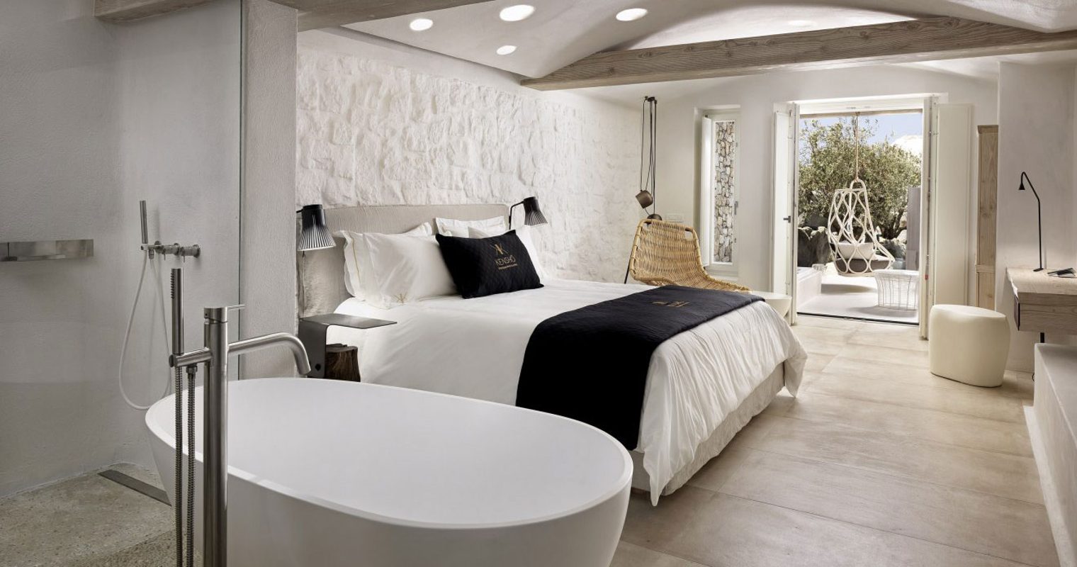 With Cycladic architecture, the main characteristic of the Kensho design of white colour, stone and wood all of the 35 rooms provide you with an exclusive hospitality experience. With each room being designed one by one with the help of illustrious designers such as Kenneth Cobonpue and Patricia Urqiola, The Kensho offers you with a unique originality to each room.
