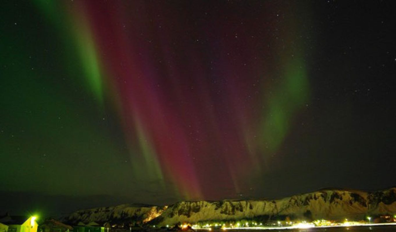 Gaze up at the night sky to see the aurora borealis from Hotel Laki’s rooftop terrace. Treat yourself to a delightful hot chocolate in the winter months to keep you warm as you wait to see dancing colours of emerald green, cobalt, magenta and violet. The hotel is family-run, and if the sky is particularly clear, they will even call your room to inform you so you don’t miss out.