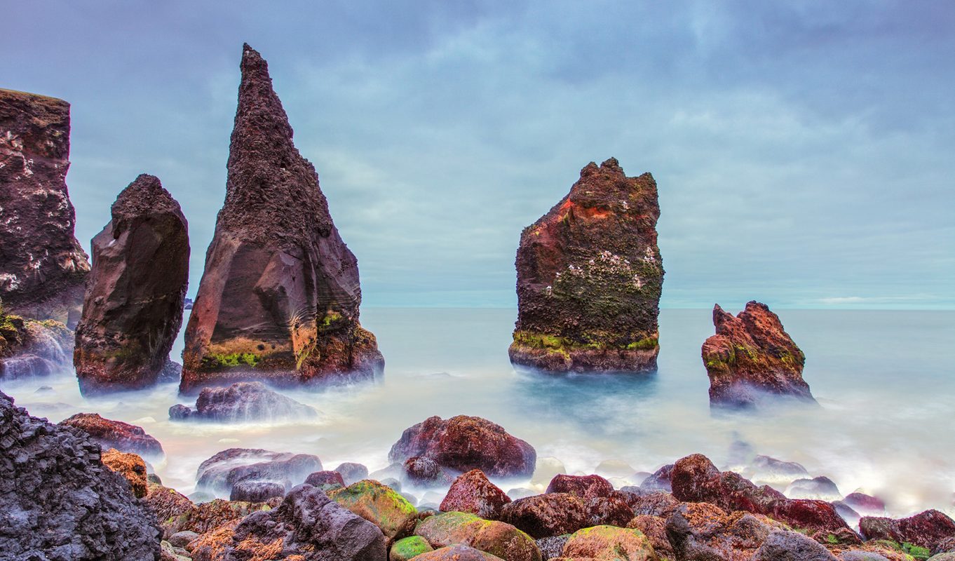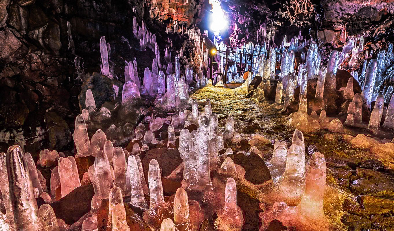 Next, we’ll whisk you away to the ruggedly beautiful Reykjanes Peninsula with its hot springs, tectonic rifts, volcanic craters and other moon-like landscapes. This breath-taking area with its rugged treeless landscape is located directly on the Mid-Atlantic Ridge and we’ll take you across the “bridge between continents”, something you can’t experience anywhere else in the world. From one unique experience to another, we’ll then take you into the chamber of the dormant Thrihnukagigur volcano. Reached by a hike over a lava field, this is a real bragging rights experience. Visiting in winter? Fear not, there’s still something incredible to experience as you instead journey into Raufarhólshellir through its lava tunnels where, each winter, spectacular ice sculptures are formed inside the entrance of the cave making the sight all the more breathtaking.