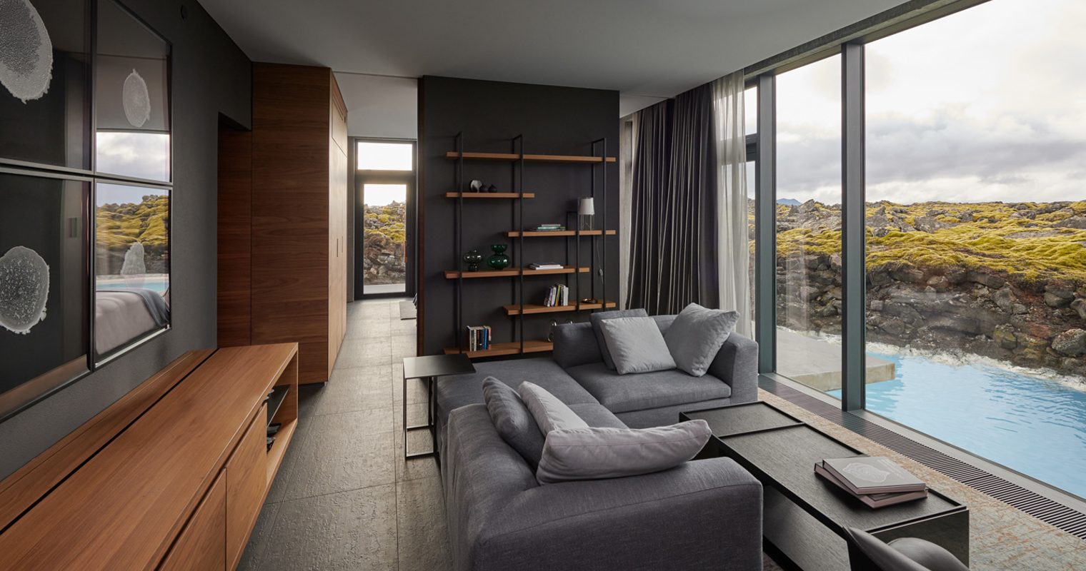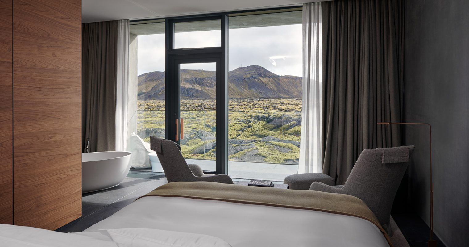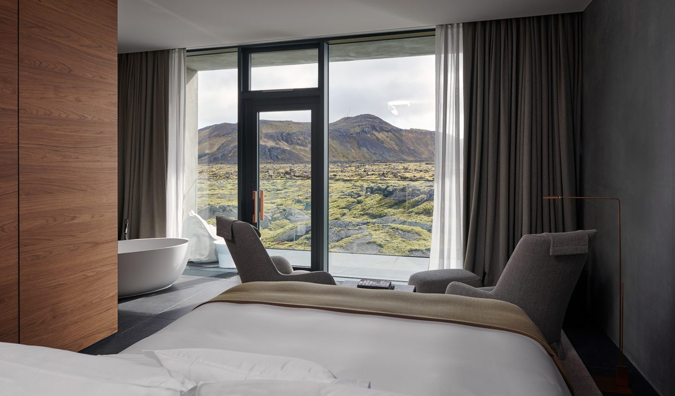A place where ‘at’ means ‘at’ – not a quick car drive away, not just around the corner; the Retreat at Blue Lagoon is quite possibly Iceland’s most enviable address. Built to show off the scenery, it does just that. Wall to wall glass overlooks moss-covered horizons, broken up by lava trails, dotted with hot springs and blazed over by the Midnight Sun and the Northern Lights; it’s pure magic. Plus, out on the Reykjanes Peninsula, just 20 minutes from Keflavik Airport and 45 minutes from Reykjavik, it’s completely within reach.