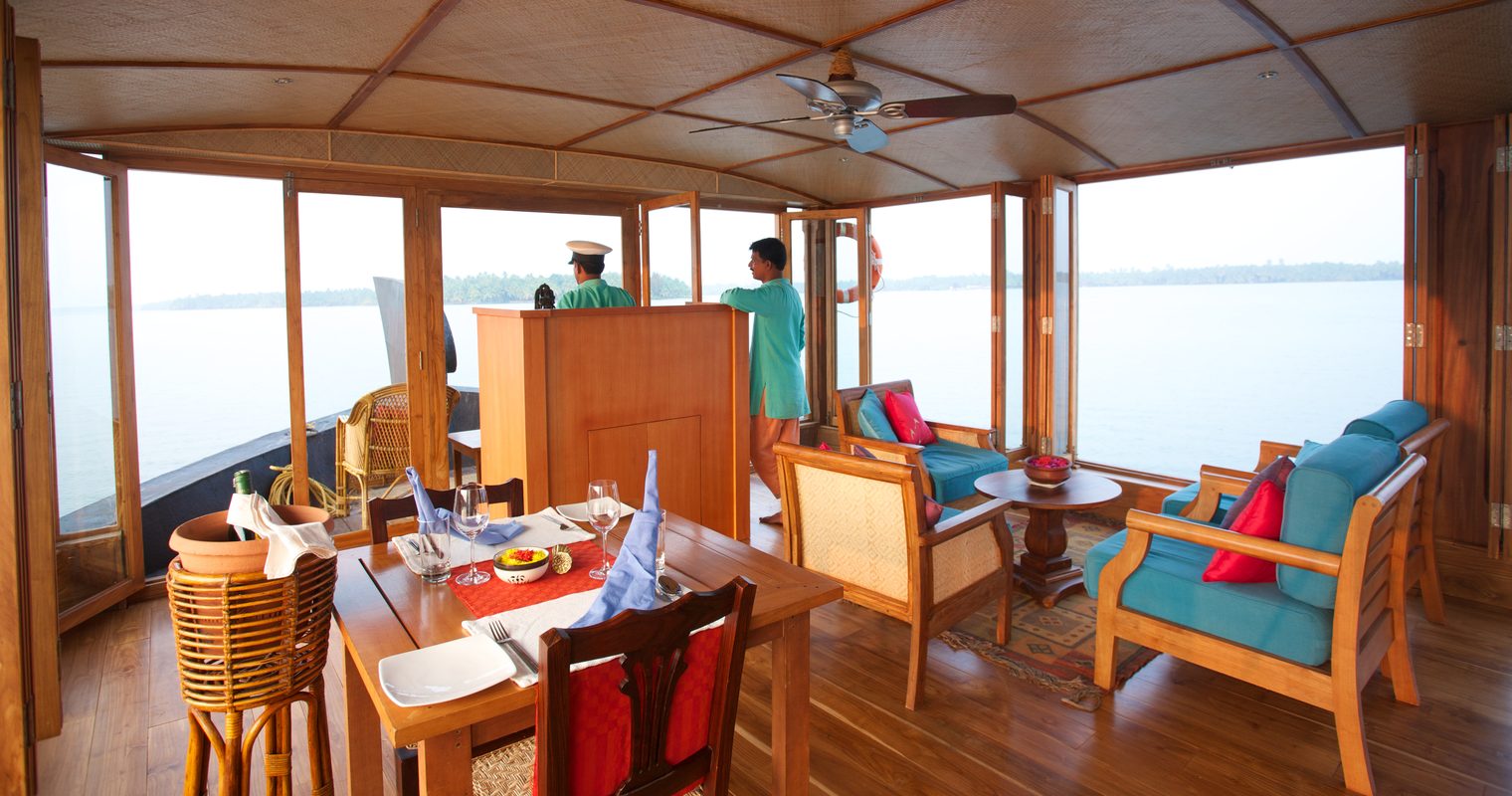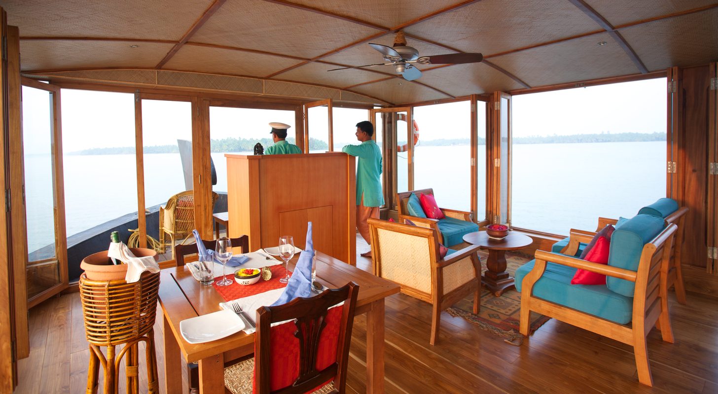 The rich, vibrant tones of the cushions and carefully-selected artwork add touches of colour to the white walls onboard Lotus. Meanwhile, with dark wood floors and wonderfully welcoming cotton sheets, you won’t believe you’re on a houseboat in the middle of the Kerala backwaters. With rooms appropriately named ‘Sukhima’ and ‘Lalima’, their meanings translating as ‘happiness’ and ‘beauty’ respectively, have never summed up this unique experience better.