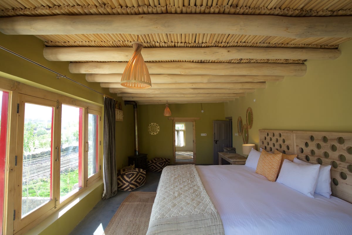 Shakti Shey Village House – At over 100 years old, this guesthouse has been fantastically renovated to fulfil your comfort needs while maintaining traditional features. Soft furnishings adorn the three rooms in gentle shades and large windows ensure a breezy feel. The roof terrace is a great place to lie back with a book and enjoy the views of nearby Shey Palace, Thiksey Monastery and the mountains.