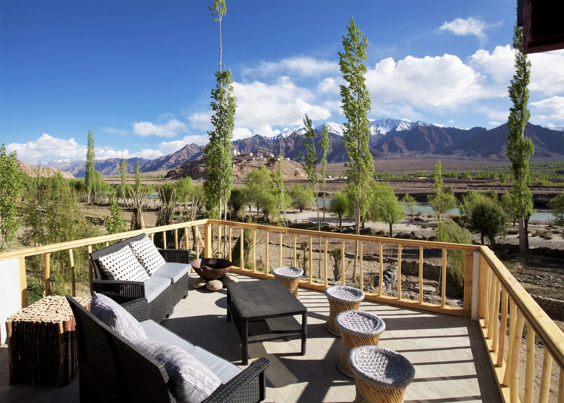 Shakti Shey Village House – An historic village, Shey is a 20-minute drive from Leh. Resting serenely on the banks of the Indus River, Shakti Shey Village House is surrounded by snow-capped mountains and overlooks deep turquoise lakes making it a perfectly tranquil hideaway up in the Himalayan Mountains of Northern India. Spend your days exploring the local monasteries and markets or trek into the surrounding mountains and raft down the River Indus.