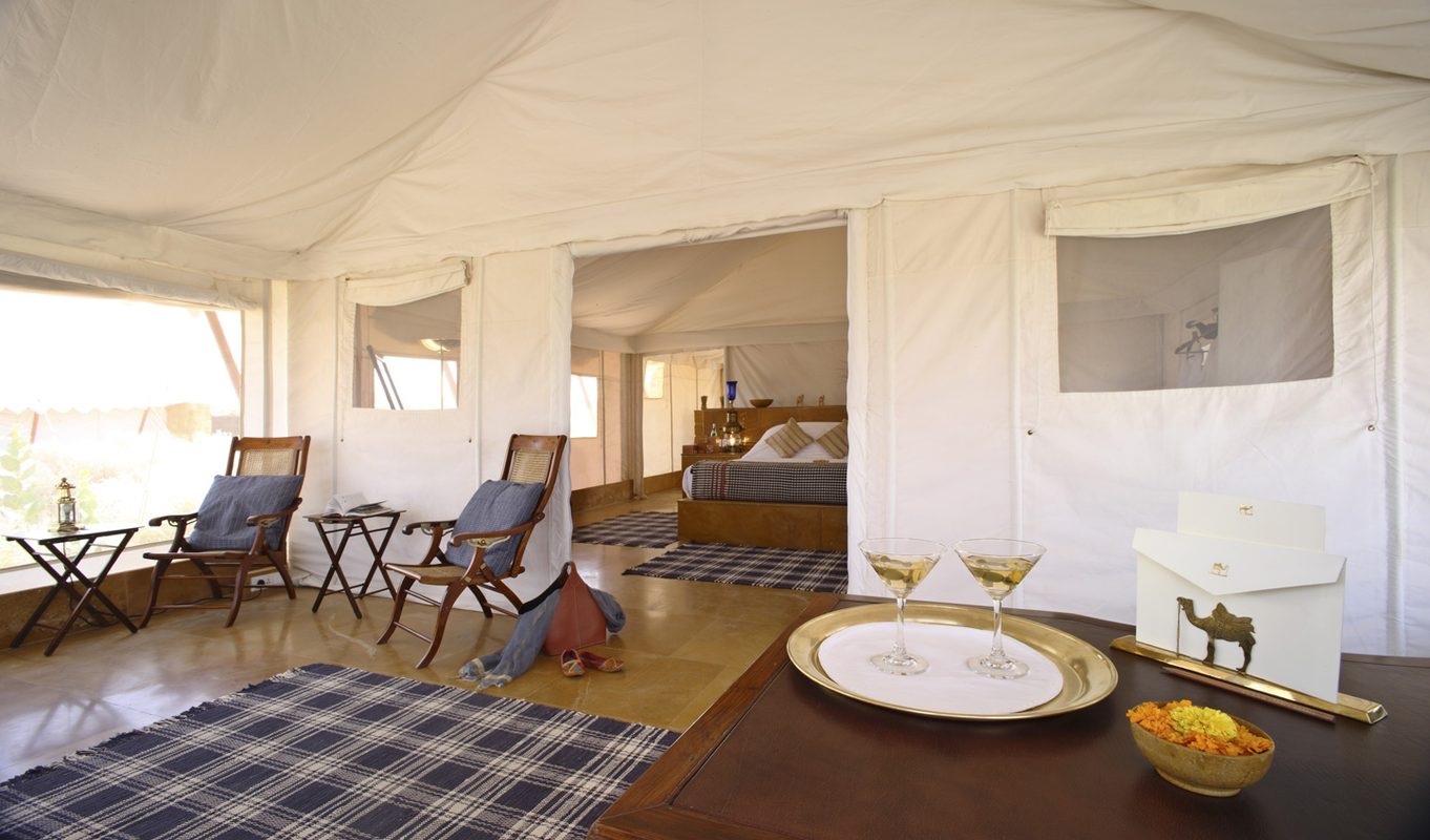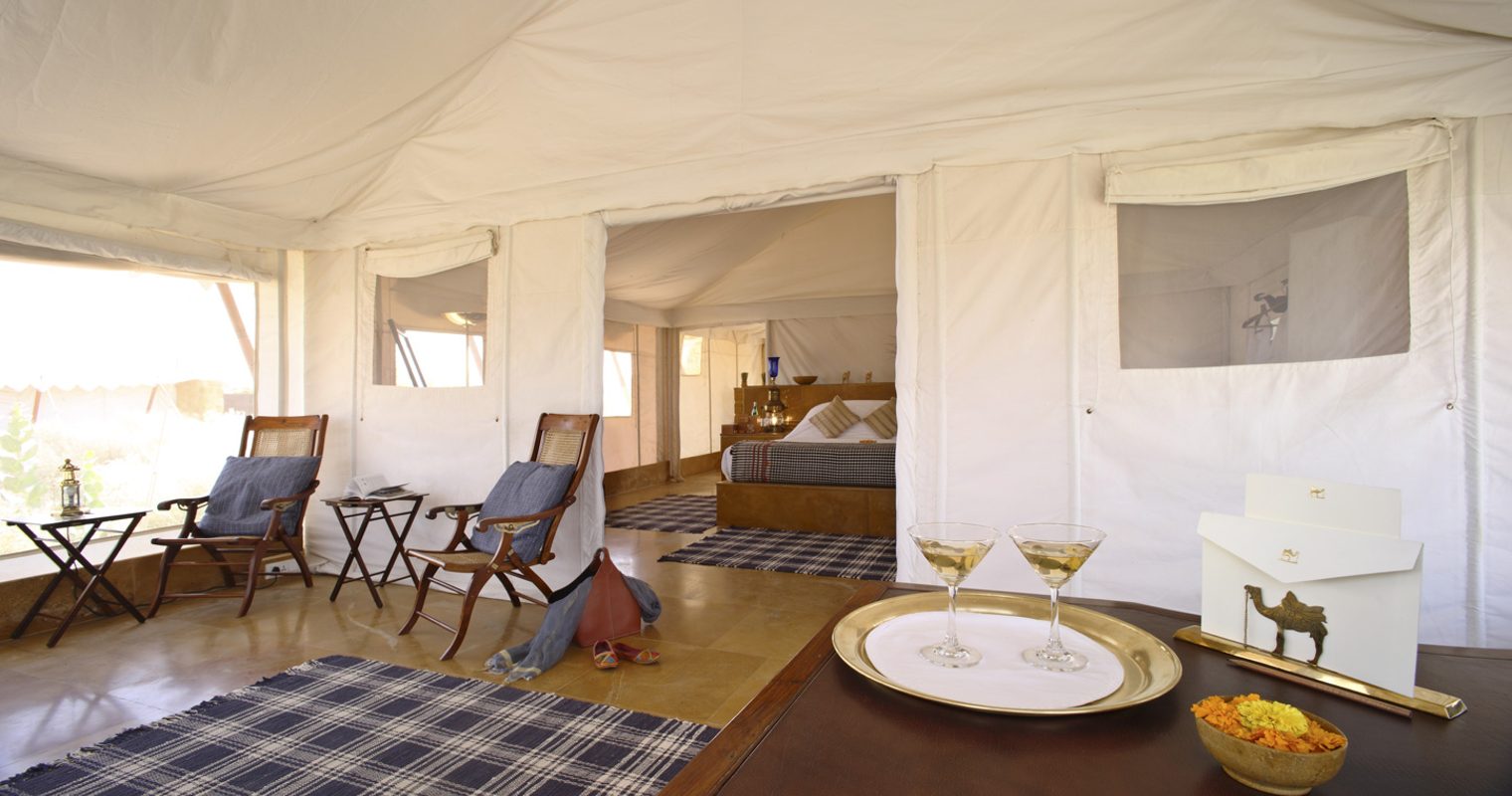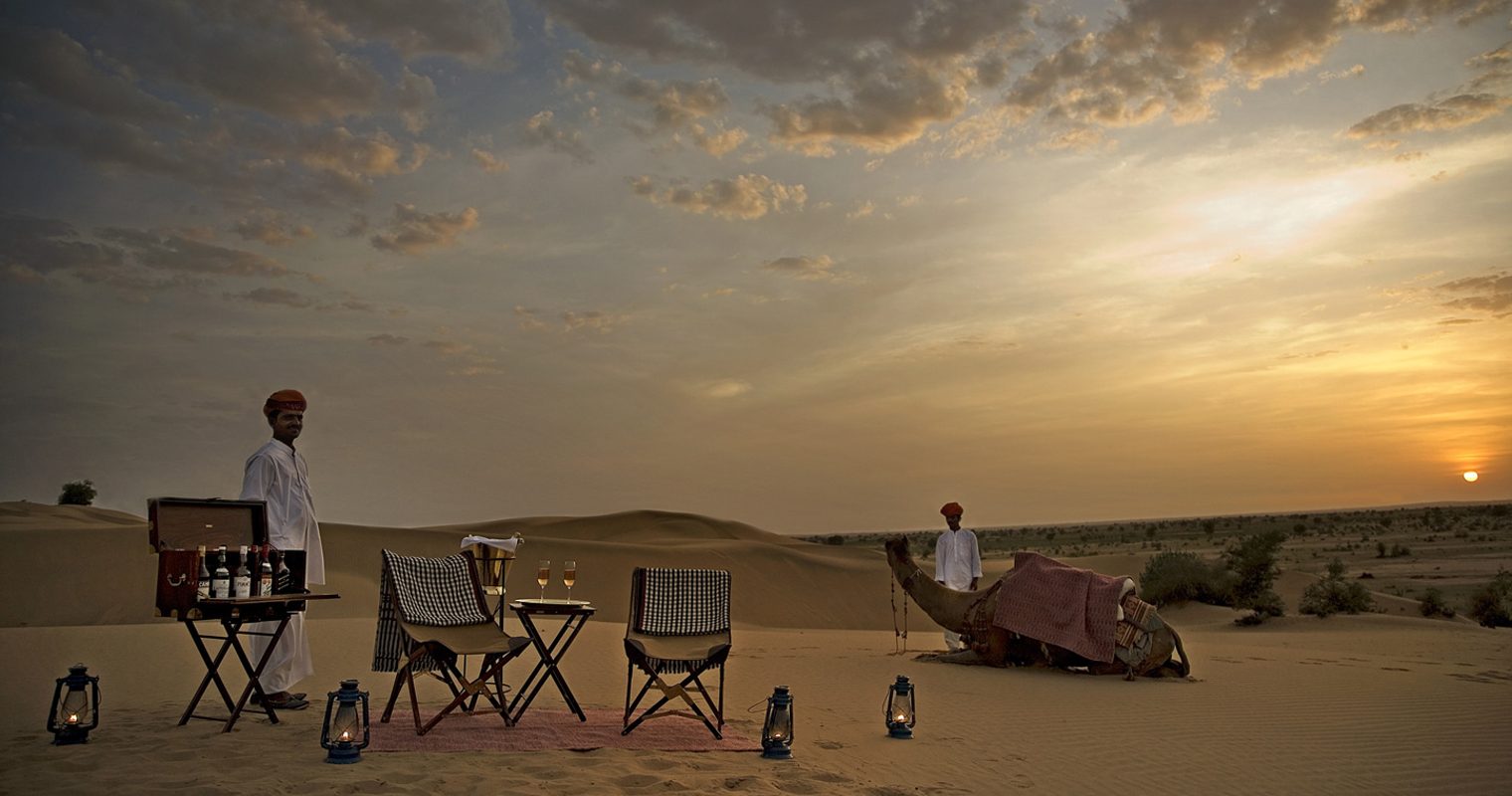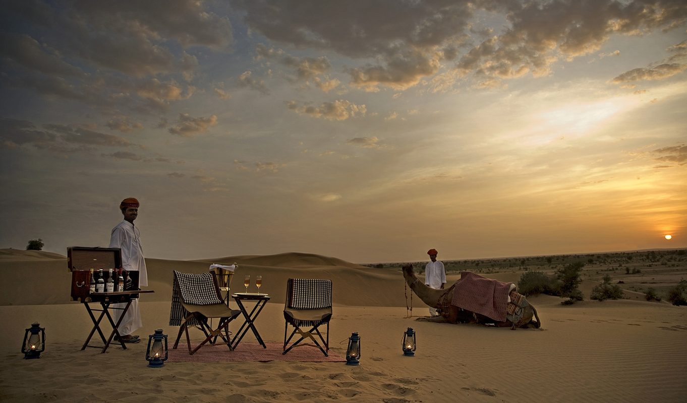 The Serai, Jaisalmer is a gorgeous classic encampment set some twenty miles West of the 12th-century medieval citadel of Jaisalmer in the heart of the Great Thor Desert. Boasting 21 luxurious tented suites, this personal and romantic desert dwelling holds something for everyone. After your camel safari and desert drives over the dunes, you can gently toast a glass of champagne and occupy yourself with spa treatments.