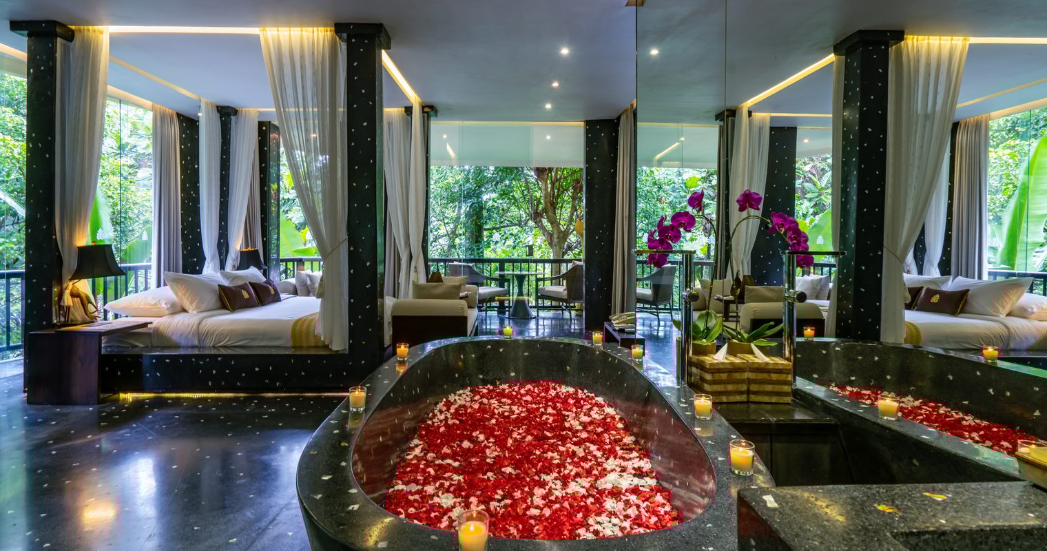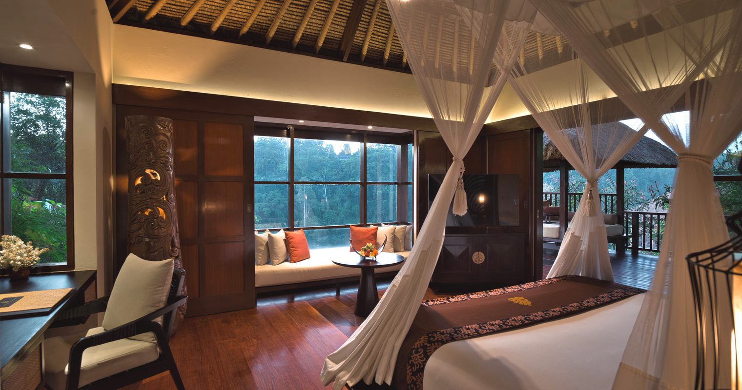 Cuddling the edge of the hillside with vistas of emerald rivers and ancient temples far below, the thatched pool villas ooze understated class and style. The Balinese influenced bedrooms, featuring elegant four poster beds, are cosy and luxurious in the same breath whilst floor to ceiling windows lead straight out onto your private pool deck. The highlight of any of the villas is of course the infinity pools which offer the perfect vantage point onto your surroundings.