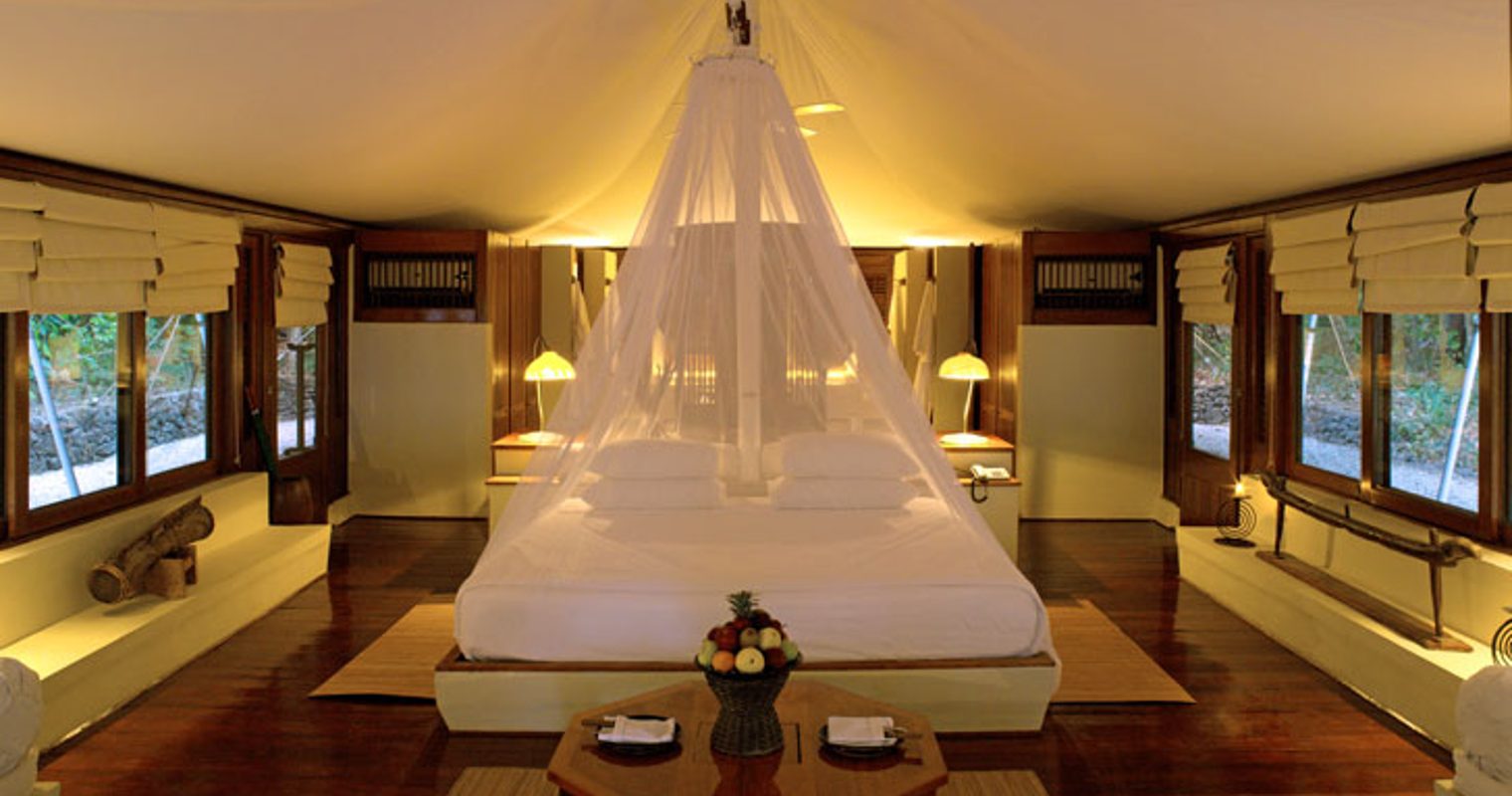 Realise your own peace in paradise on Indonesia’s unspoilt, private island of Moyo, just east of Bali. With its 20 super-luxury tents, the Amanwana is Moyo’s only resort, sitting directly on the shores of this tiny island escape, there guaranteeing you exclusive tranquillity. A chic, pristine take on traditional south-east Asian design with its rich, dark wood throughout and impressive tent-roofing, the Amanwana makes being one with nature more than comfortable. The beautiful resort, with its exotic, timber bar and touches of Indonesian authenticity is sprinkled with lovely, mood lighting, creating a setting that oozes romance and relaxation.