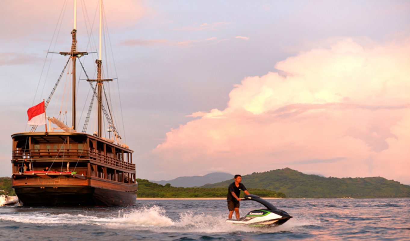 From walking with dragons in Komodo National Park, to diving amongst the kaleidoscopic Coral Triangle, there is endless fun to be had during the day. But, it’s at night that Dunia Baru really comes to life. The start of the evening is signalled by the magical transformation of the deck into an al fresco cocktail bar unlike anything you’ve ever seen before. Grab a cocktail and prepare for a whole other kind of rainbow as the sun sinks down and turns the sky a vivid hue of pinks, reds and oranges. Later, after the sun has disappeared, peer over the edge of Dunia Baru and marvel at the underwater LED lights that light up the ocean and bring many fish, manta rays, dolphins and even whale sharks over to feed.