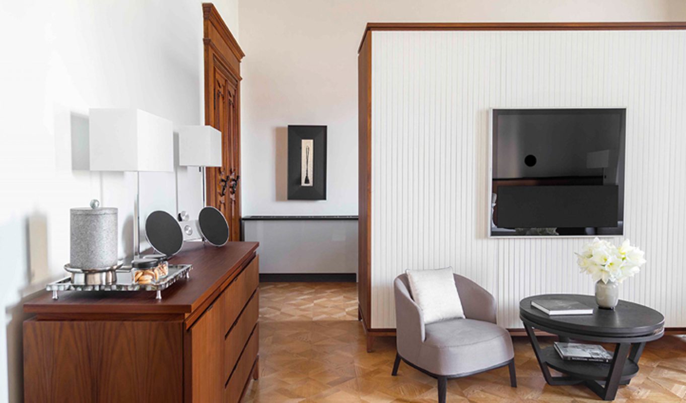 No matter what category of room you choose, period pieces and original architectural details bring the palazzo’s romantic heritage to life. It’s opulence all the way here, with king-sized beds and contemporary furnishings perfectly complementing chandeliers and chinoiserie. We particularly love the Sansovino Stanza, where the 16th century fireplace, wood-panelling, painted frieze and carved ceiling evoke a sense of traditional Venice. Whilst for views of the Grand Canal, the Maddalena Stanza is unbeatable.