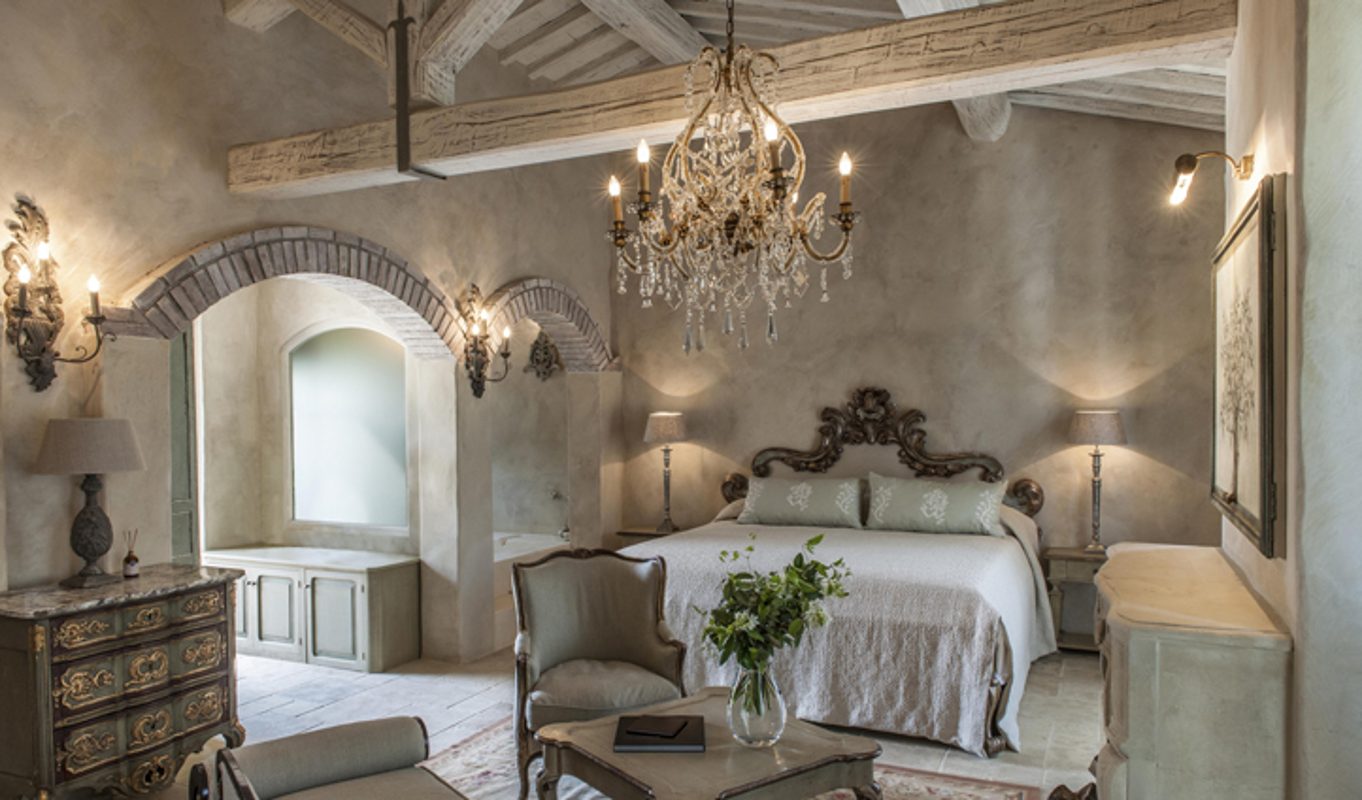 Borgo Santo Pietro’s rooms are all remarkably elegant and designed to reflect authentic Italian luxury. Each is individually adorned with the finest antique furnishings and muted colours give a warm yet sophisticated air with ornate plaster-work, hand-painted murals and tapestries draped along the walls. Dotted amongst the baroque opulence are all of modernity’s mod-cons, including iPads and discretely concealed plasma TVs, as well as private seating areas, each with fantastic views over the grounds and valleys beyond.