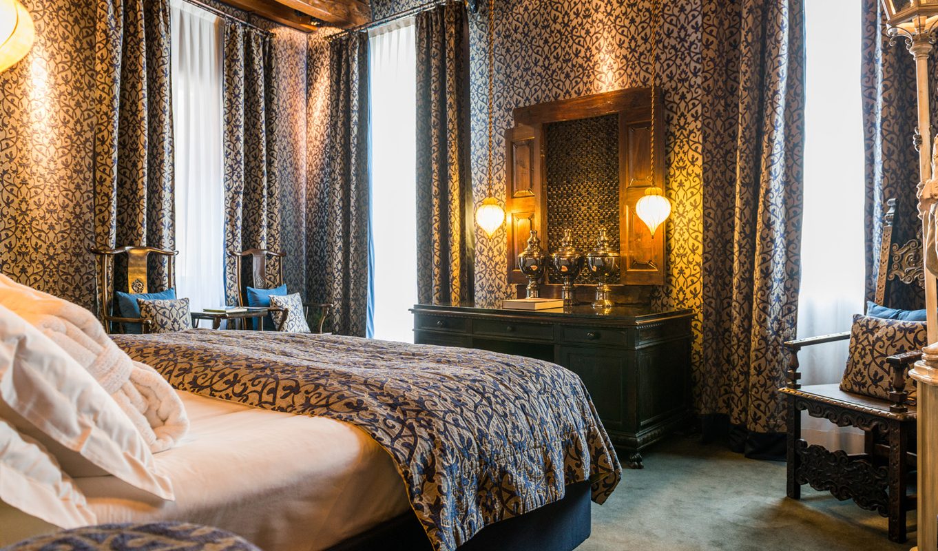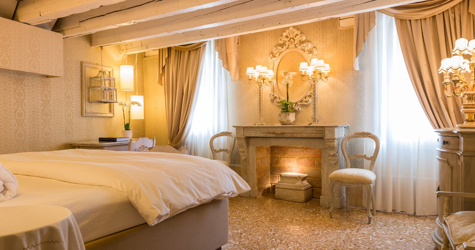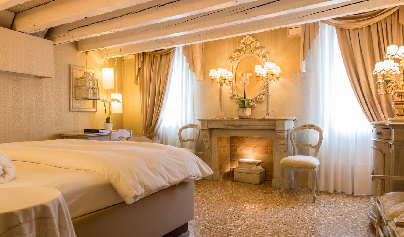 The five concept rooms, two suites (one with a little balcony) and deluxe rooms are all designed to satisfy the highest demands, finding inspiration in the history of Venice to create a distinctively traditional atmosphere. Each room is delightfully decorated with subtle tones, beautiful dark-wood furniture and marble bathrooms – the Sala del Camino is particularly decadent with its sophisticated use of cream colours.