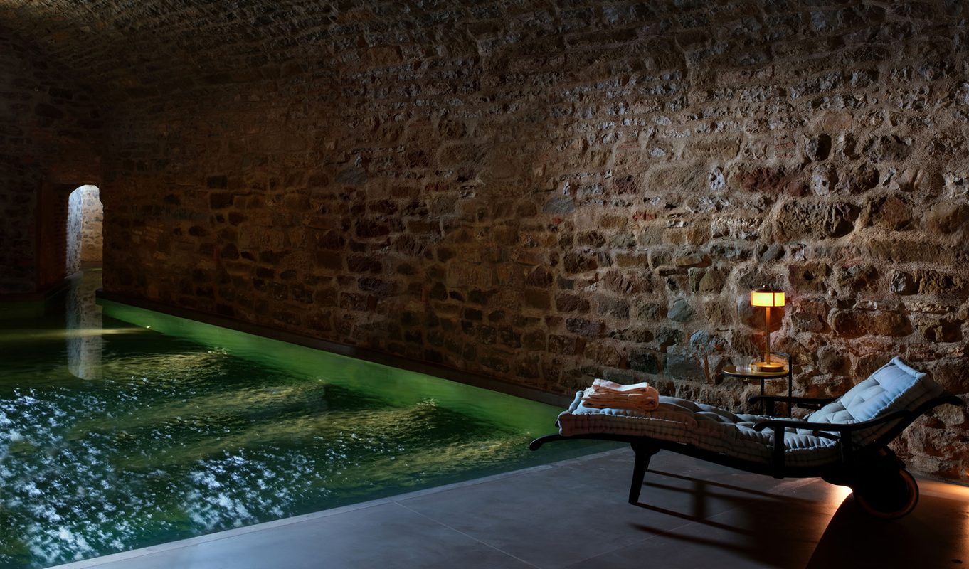 Few places can challenge the ingenuity and design of The Reschio Estate. Whilst the swimming pool beguiles with its mirrored surface sunken into a lawn sheltered by umbrella pines, and the restaurant enchants with its refined cuisine served atop the ramparts amid the scent of blossoming fig trees, nowhere captures the imagination quite like the Bathhouse. Down in the bowels of the Castello, the ancient wine cellars have been carved out and flooded with warm saltwaters inspired by the ancient Roman baths. Moody shafts of lights are thrown down by high up windows, felt at their most atmospheric in the cosy pool that forms the base of the tower. Elsewhere, the red wine cellar has become a private spa with room enough for six and a space designed for convivial relaxation with its conversation baths and private juice bar. Upstairs, a healthy wine list remains and we recommend leaving the Bathhouse in time to enjoy a glass in the bar as you catch thick syrupy sunsets cast their glow through the tropical-hued Palm House.