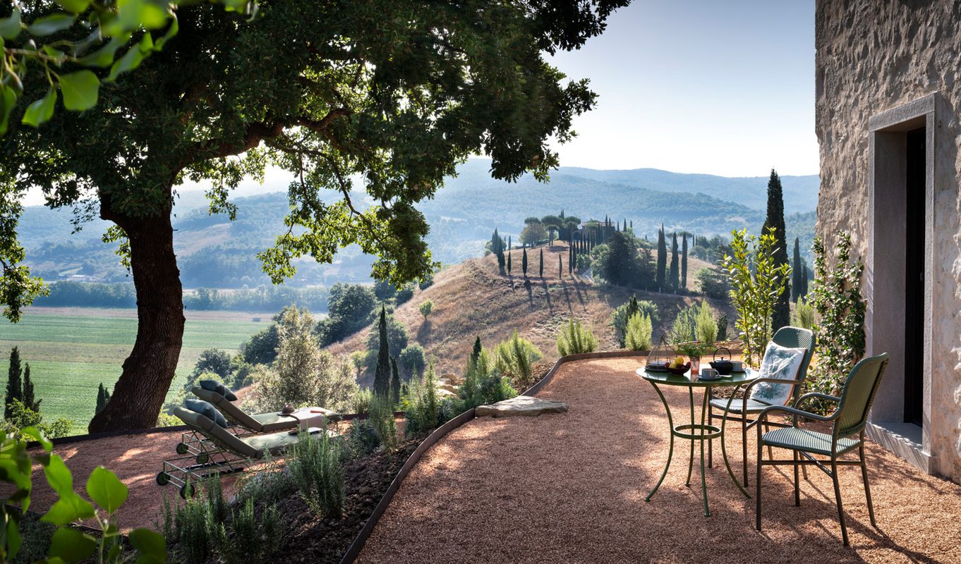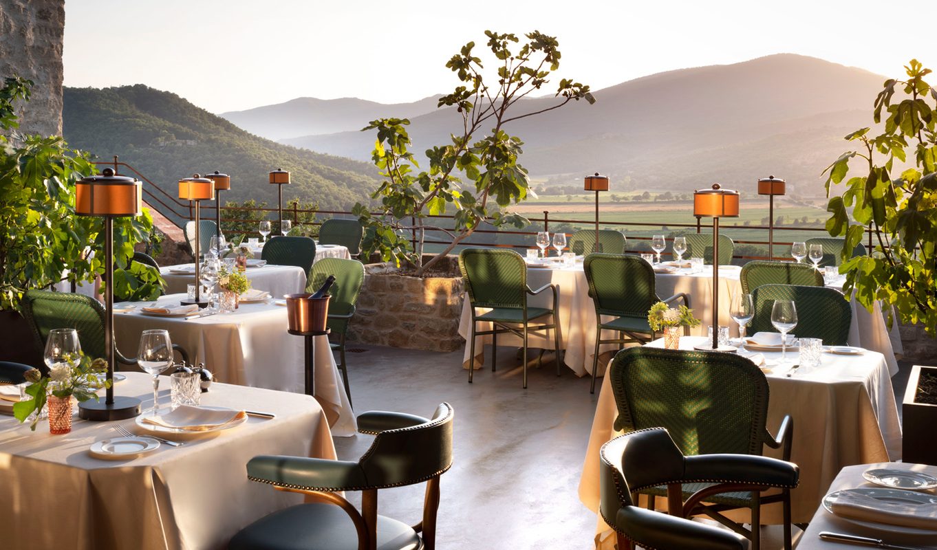 Handstitched linens and warm terracotta floors, fabrics that caress the touch and bespoke red silk slippers that sit bedside; the details that make up the 36 rooms and suites at Hotel Castello di Reschio come together to create spaces of unique luxury. Drawing on the history of the Castello, antique ornaments and bespoke pieces give each room its own distinct personality, while individual touches such as standalone bathtubs in the bedroom or private terrace gardens ensure no two are the same. None epitomise this flair quite like the Tower Suite, however. Set across five floors in the Castello’s original tower, this two-bed suite is crowned by a spectacular roof terrace with a hot tub perfect for enjoying the 360-degree views.