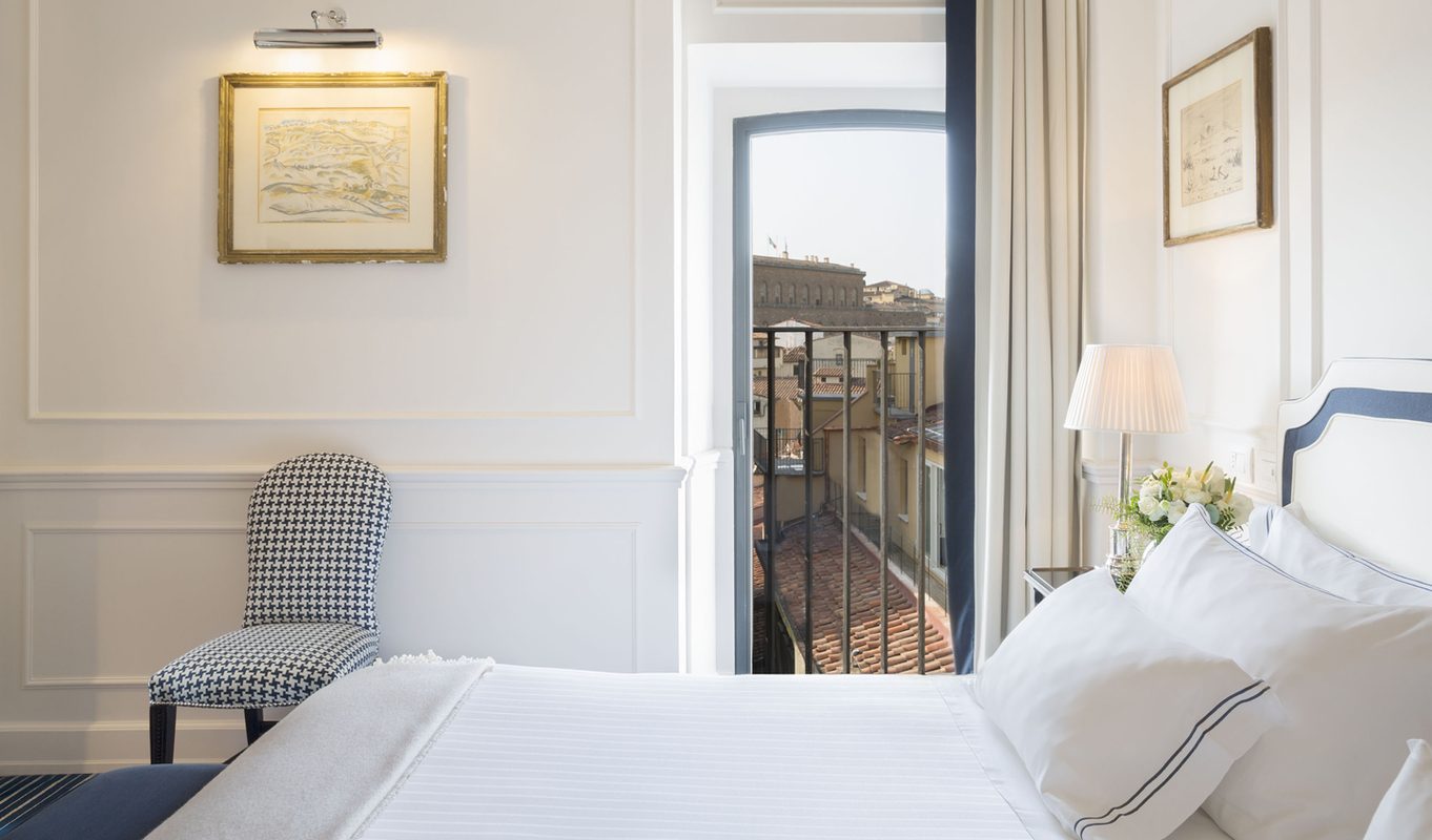 Classic Italian elegance is given a contemporary twist in the 65 rooms and suites at Hotel Lungarno. Bathed in natural light, soft tones create that romantic atmosphere Italy is so famous for, whilst splashes of colour introduce a more playful side. The walls are adorned with works of art from the likes of Picasso and Cocteau whilst windows and private terraces look out over the river and the city. We particularly loved the Rooftop Terrace Suite with its panoramic views over Florence.