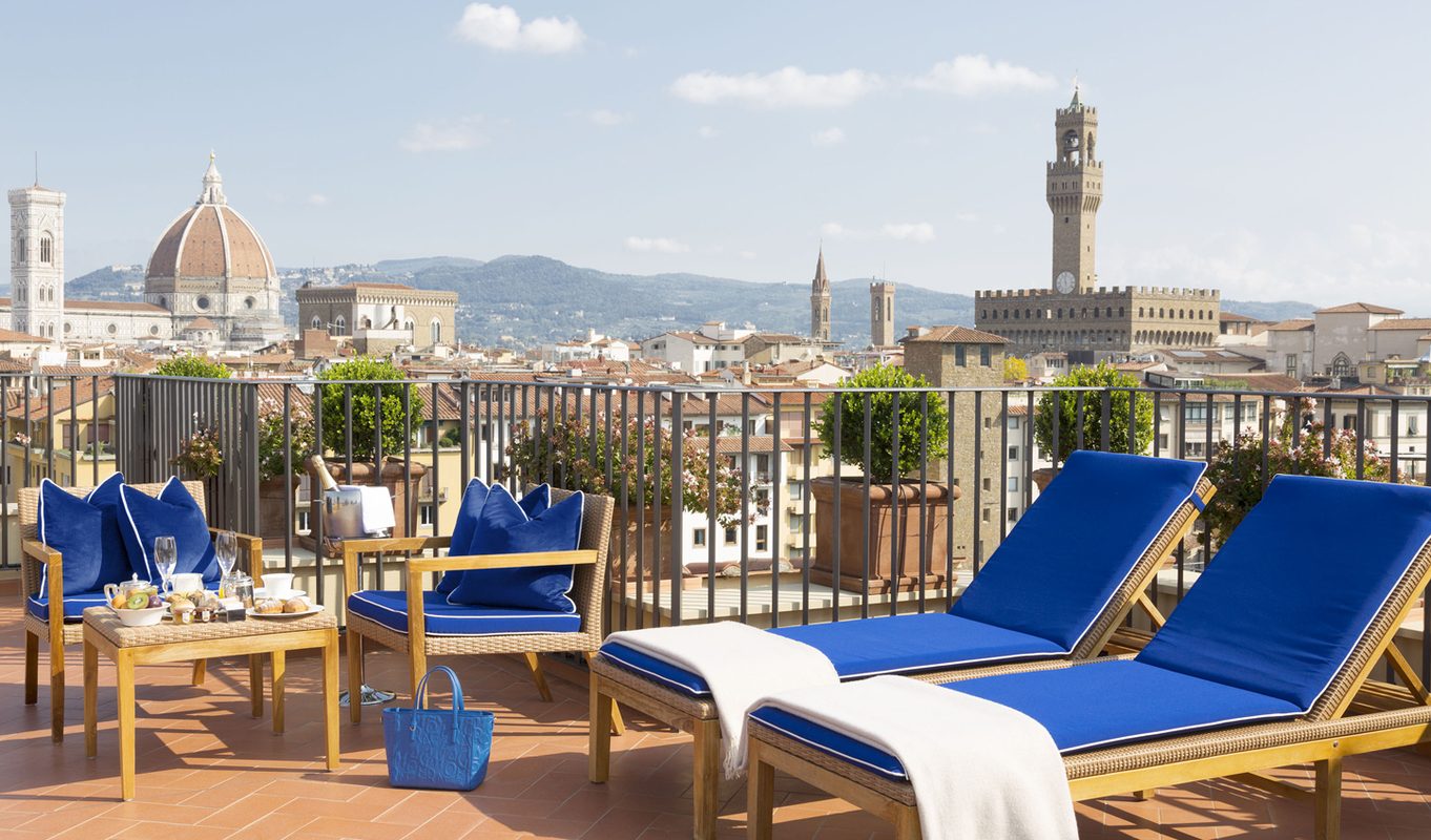 Hotel Lungarno easily has the most enviable address in Florence. It is the only hotel to literally sit on the banks of the River Arno with a graceful reception room that seems to float just so over its shimmering waters. Steps away from the Ponte Vecchio, the wonders of Florence are quite literally on your doorstep. From the flagship Ferragamo boutique to the awe-inspiring Duomo and the masterpieces of the Uffizi, Florence is yours to explore. Thirty minutes from the airport and the Tuscan countryside; you’ll be strolling those cobbled streets with a gelato in no time.