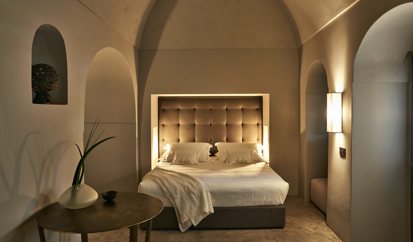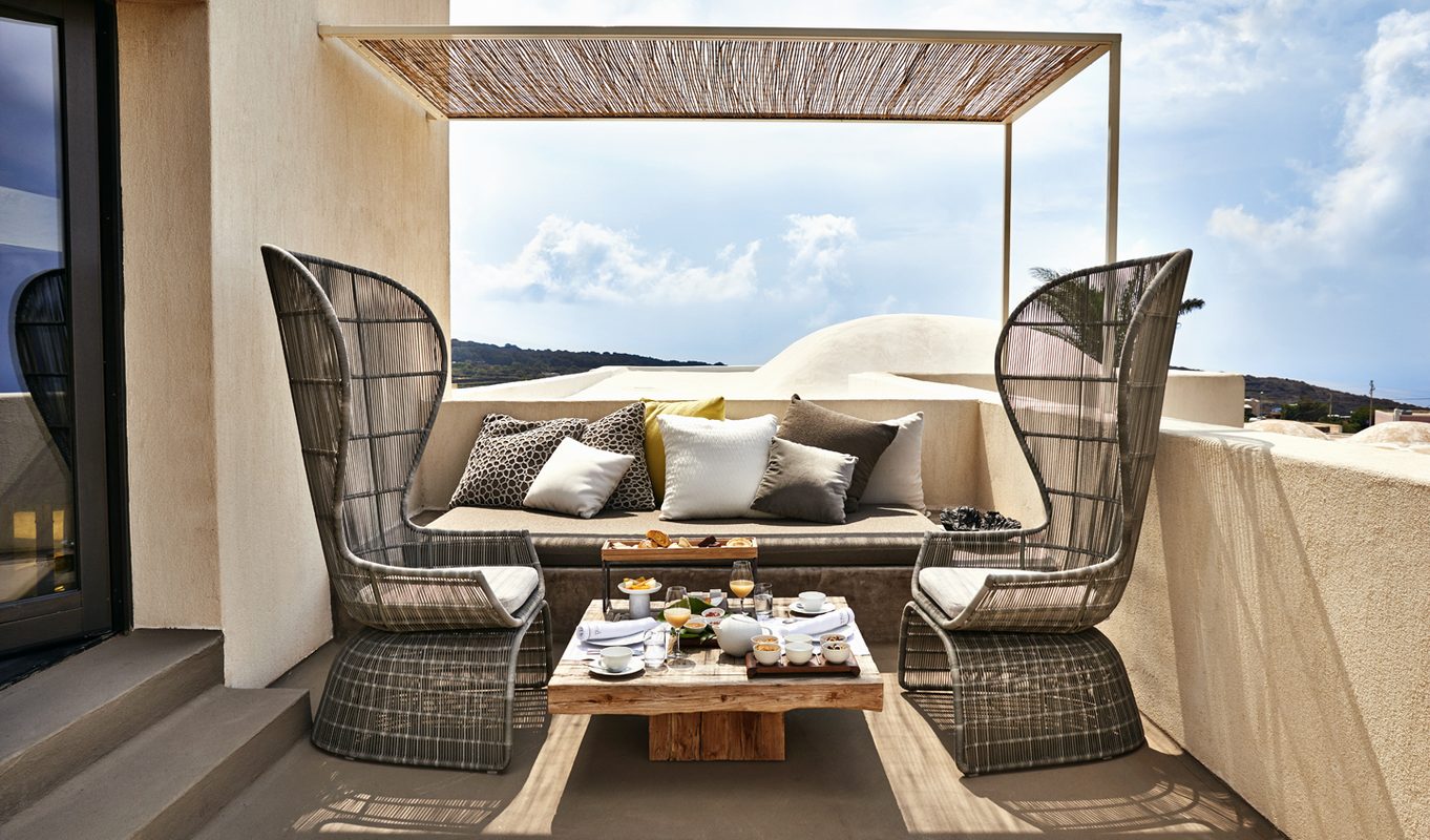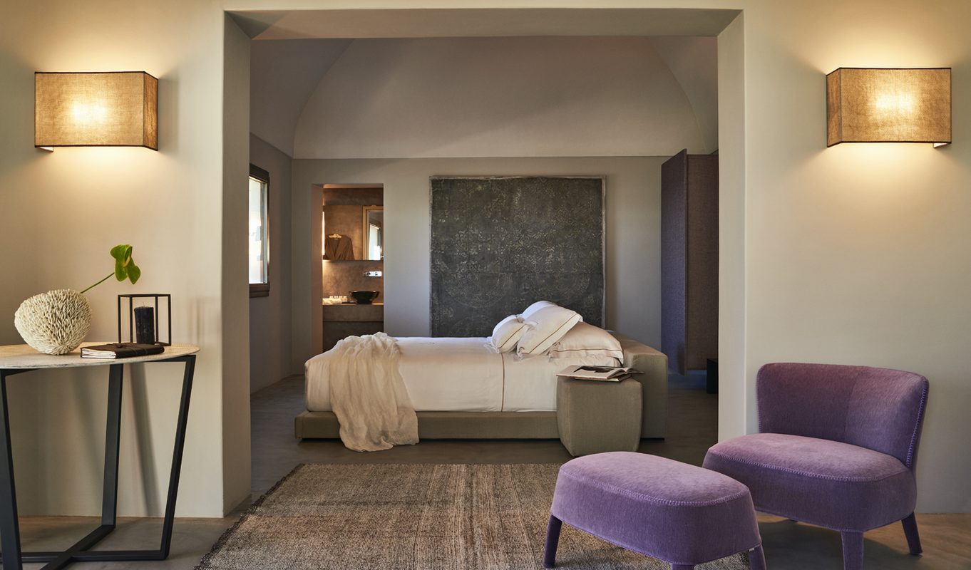 Sikelia has only 20 rooms in total, all of which are individual suites with their own private bathroom and outdoor terrace. All of the suites are carefully built into the landscape using locally sourced stone, and although they all share the same stylish, minimalist design, they are all different in their own right. Every room is comfortable but elegant, with luxurious detailing, fresh fabrics and contemporary interiors. Half of the suites overlook the hotel’s tranquil courtyard and pool, whilst the other half enjoy stunning ocean views. All of the suites have been designed specifically so guests can enjoy a unique sunset view from the privacy of their own terrace.