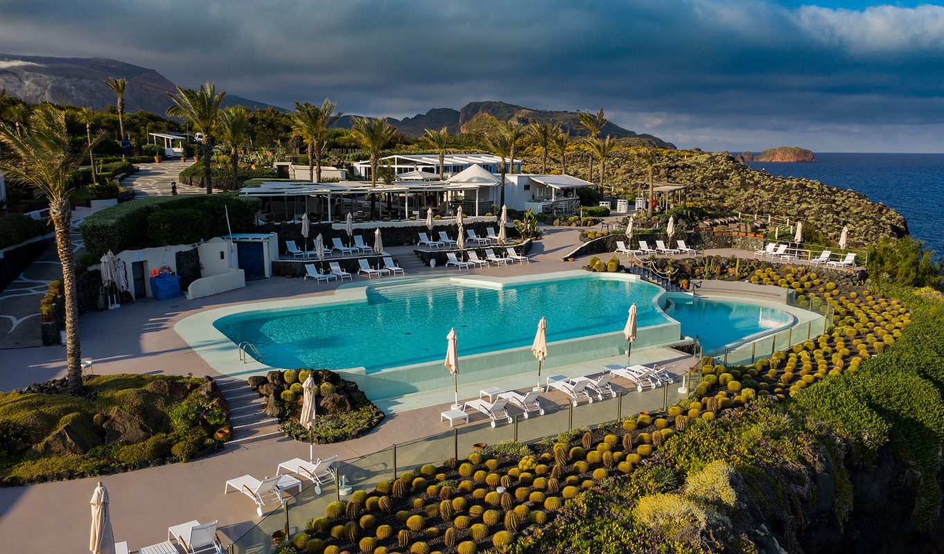 Perched on a rugged overhanging cliff that boasts one of our favourite sunset views of all time, the Therasia Resort and Spa can be found on the quaint island of Vulcano, where you will be whisked back in time to an undulating volcanic landscape that retains a distinctly untouched charm. Despite this undiscovered feel, Vulcano is wonderfully easy to reach; just a stone’s throw away Ferry ride from the mainlands of Italy or Sicily will take you to the island’s charming port. The hotel itself provides the perfect base to discover the archipelago; just 5 minutes from the Vulcano’s natural sulphur baths and 15 from the island’s imposing volcanic crater, your days can be spent soaking in healing mud or striding to smouldering peaks before embarking on a a private and intimate boat tour of Aeolian archipelago.