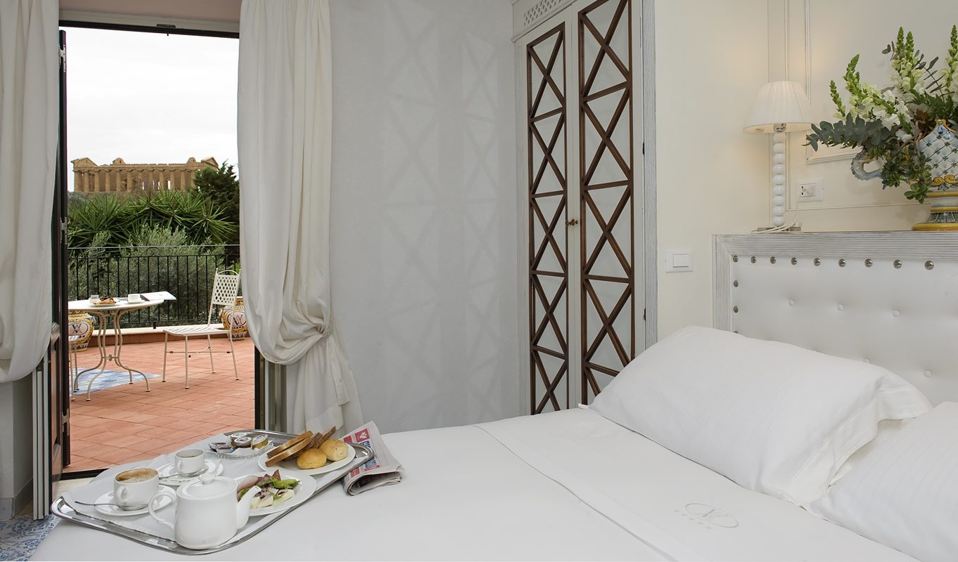 Nowhere does ‘room with a view’ quite like Villa Athena. Overlooking the Temple of Concordia and surrounding hillsides, the temple view rooms offer timeless luxury, whilst set in the heart of a Mediterranean garden, Junior Suites ooze tranquillity. Classically elegant, each of the 27 rooms and suites features traditional touches balanced with contemporary comforts such as marble bathrooms and cosy living areas. Our pick of rooms though? It has to be the Villa Suite. French doors opening up onto a private terrace overlooking the Temple of Concordia, it’s quite simply jaw-dropping.